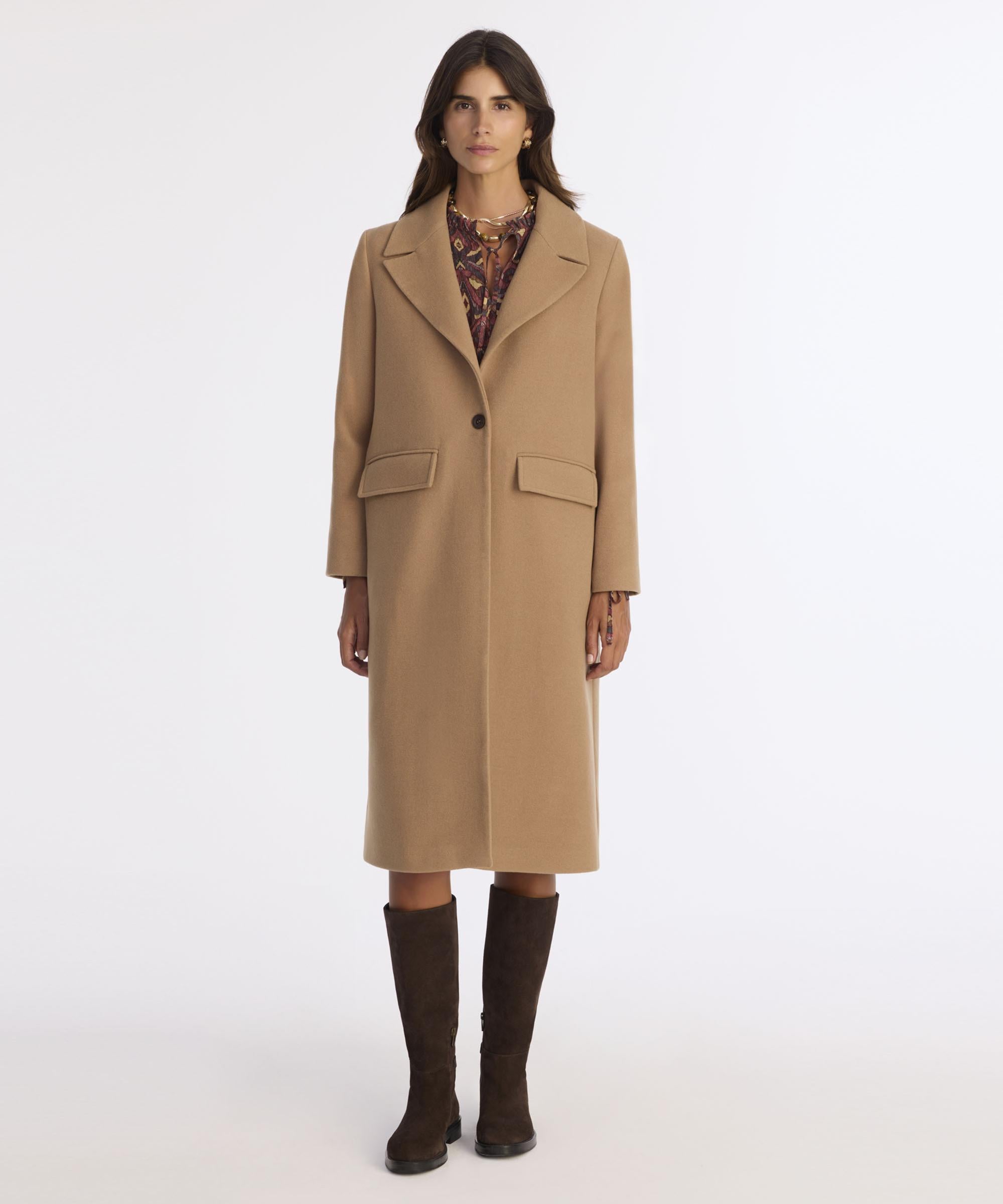 Sade ve zarif tasarımıyla dikkat çeken bu uzun kaban, tek düğme kapamalı yapısıyla modern bir silüet sunuyor. Düz kesimi sayesinde hem klasik hem de günlük kombinlerde rahatça tercih ediliyor. Kalın kumaşı soğuk havalarda sıcak tutarken şıklığınızdan ödün vermemenizi sağlıyor. Diz altına kadar uzanan formu, kalın trikolar ve diz boyu çizmelerle harika bir kış kombini oluşturuyor.