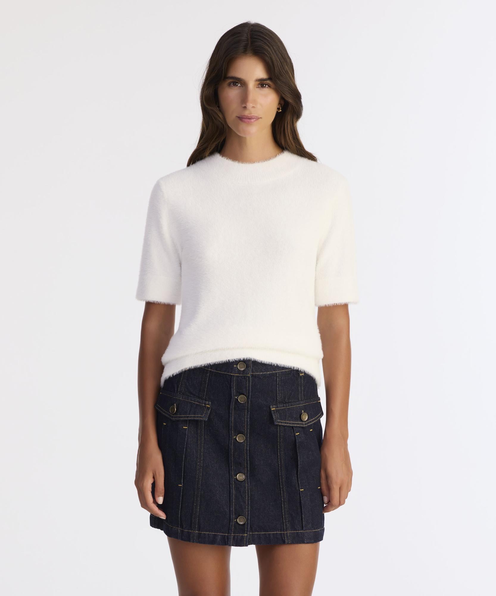 Yumuşacık dokusu ve sade tasarımıyla öne çıkan bu yarım kollu kazak, rahatlığın ve şıklığın buluşma noktasıdır. Hafif oversize kalıbı sayesinde katmanlı kış kombinlerine uygun bir zemin hazırlar. Bu kazak ile kıış boyunca stilinizi sıcak tutabilirsiniz. Dar paça pantolonlar ve kalın tabanlı çizmelerle hoş bir kış kombini oluşturur.