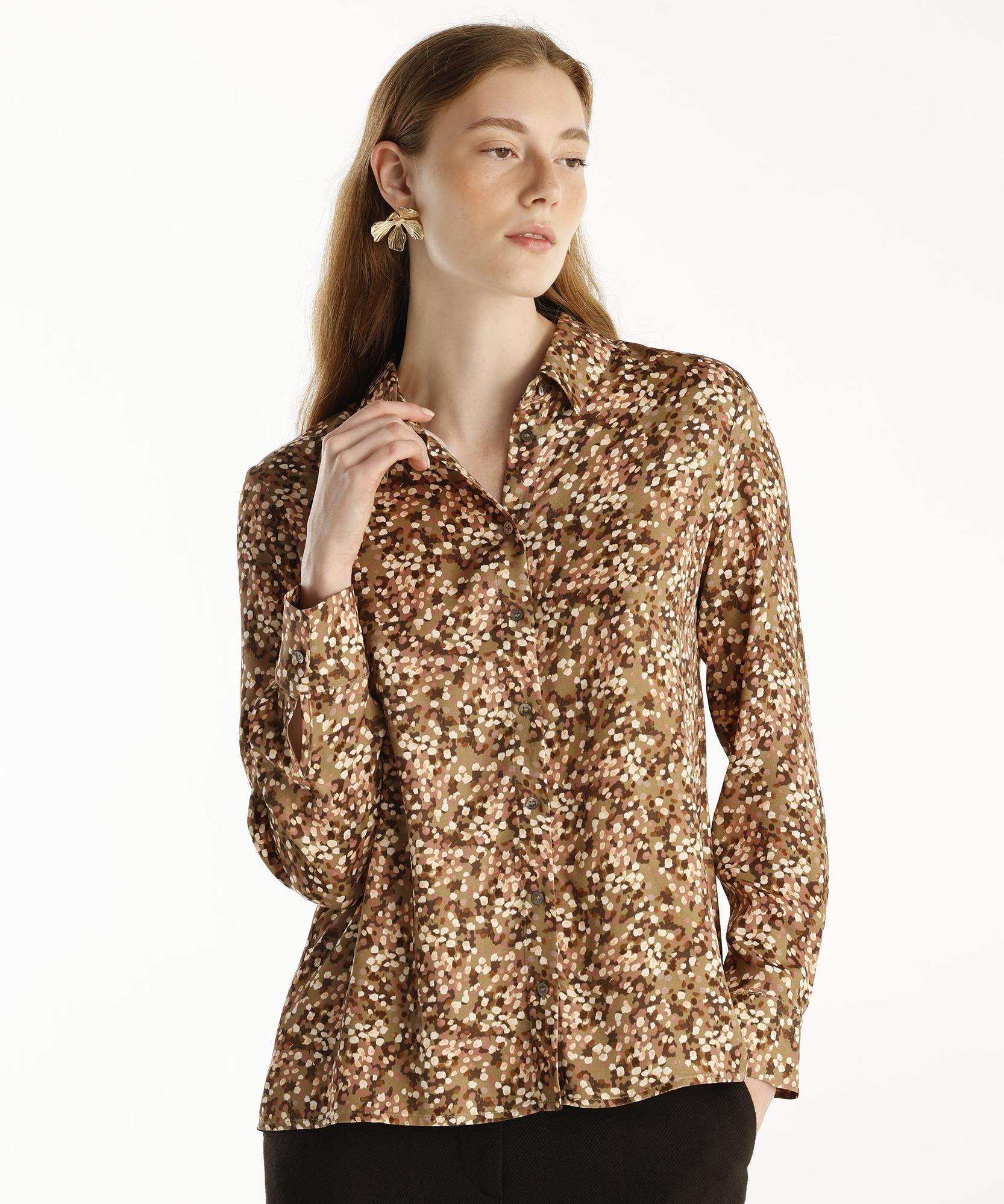 Etnik esintilere sahip tasarımlı bu gömlek, geniş kesimi ve rahat yapısı ile günlük kullanım için ideal olan bu model, bohem stil severler için harika bir seçenek.