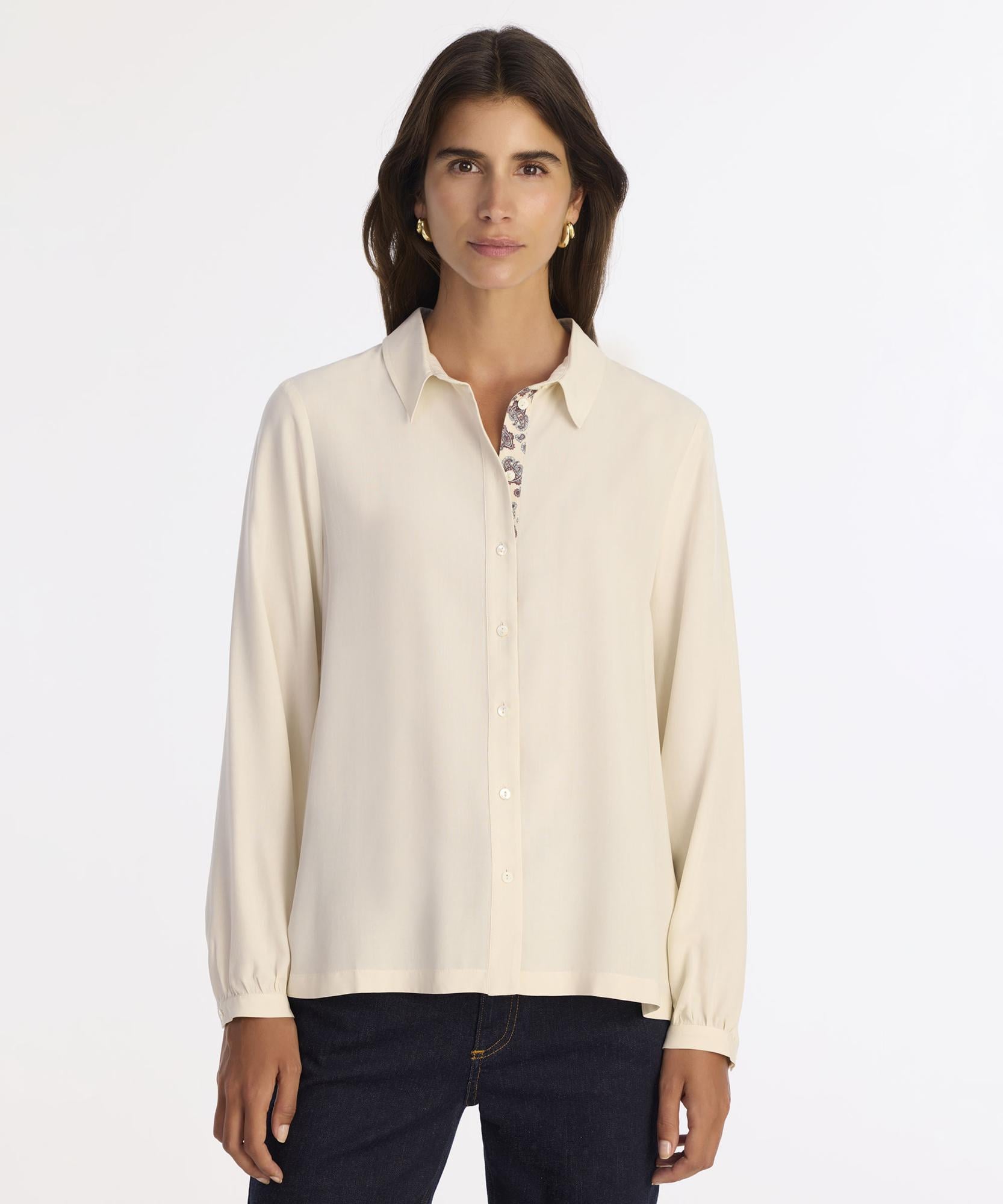 Klasik görünümünü yaka iç kısmındaki paisley desenli detayla zenginleştiren bu sade gömlek, zarif bir sürpriz sunar. Hafif dökümlü yapısı ve sade çizgileri sayesinde farklı tarzlara kolayca uyum sağlar. Kış aylarında yün hırkalar ya da blazer ceketlerle birlikte kombinleyerek günlük şıklığınıza incelik katabilirsiniz. Hem ofis hem de günlük kullanım için çok yönlü bir alternatiftir.