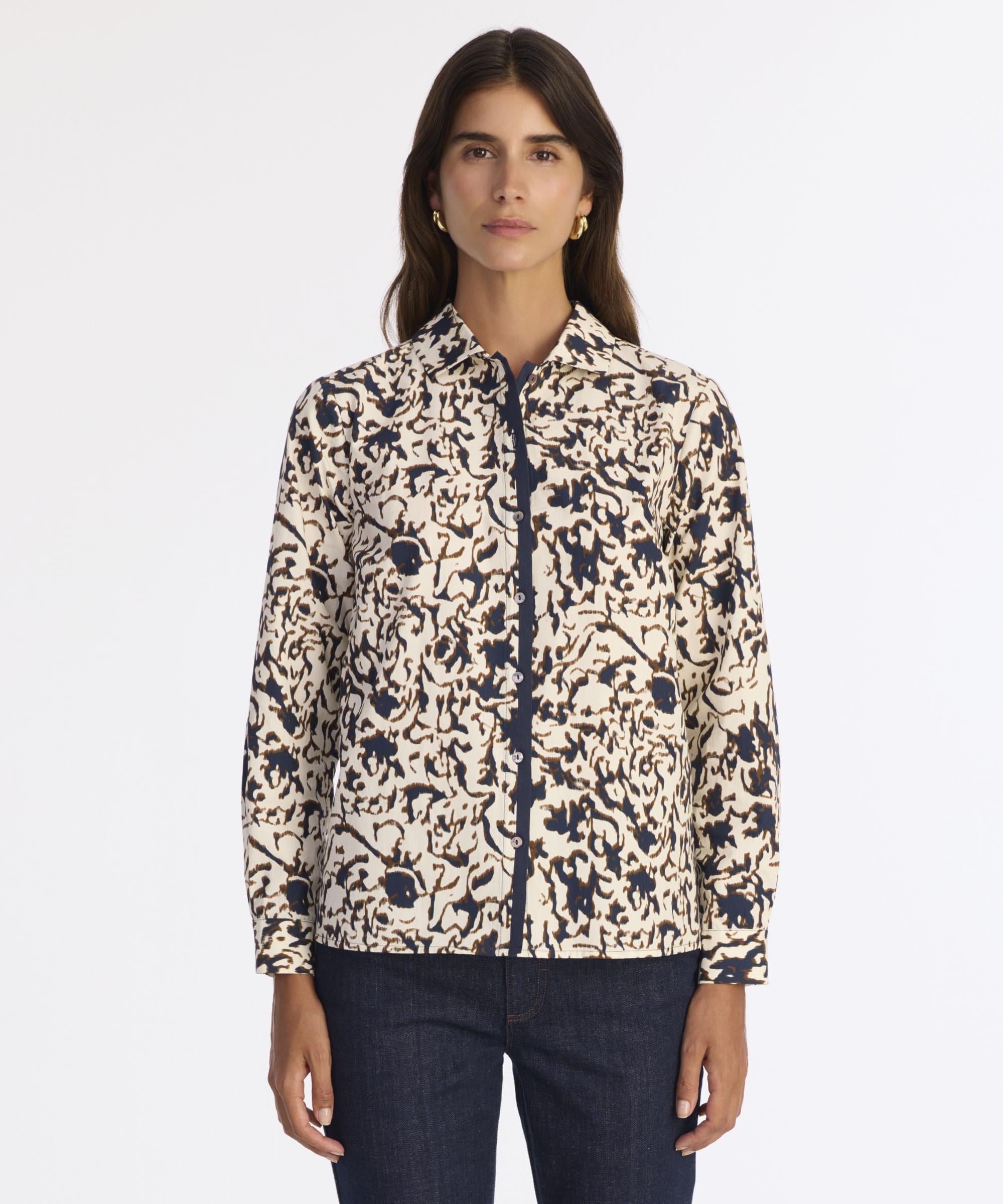 Soyut desenleriyle dikkat çeken bu gömlek, klasik kesimi modern bir dokunuşla yeniden yorumlar. Düğme detayları ve dinamik deseni sayesinde stilinize enerjik bir hava katmak mümkündür. Soğuk havalarda oversize kabanlar ve kaşe pantolonlarla oldukça şık bir kombin oluşturur. Günlük şıklıkta fark yaratmak isteyenler için zarif bir tercihtir.