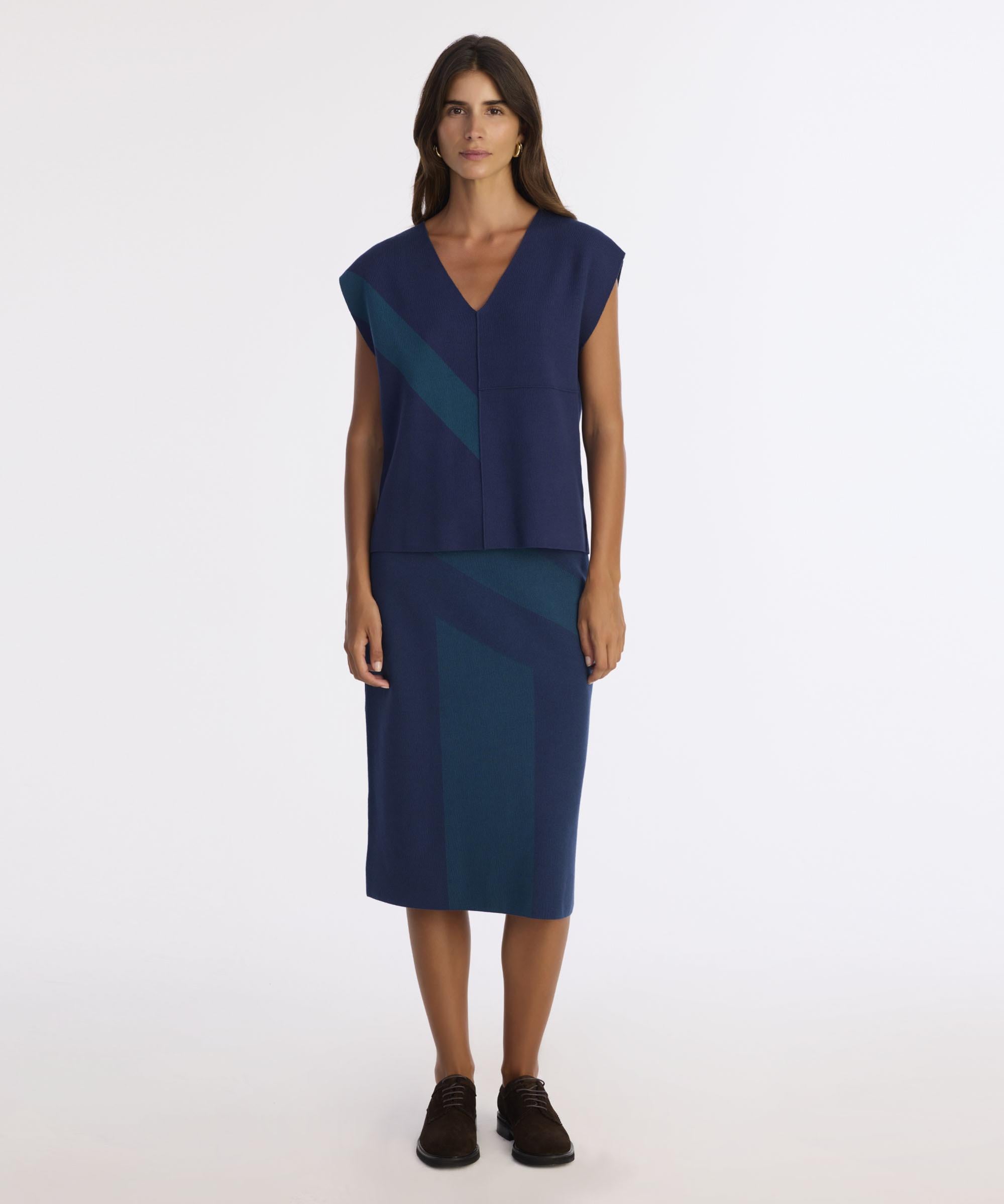 Modern çizgili detayıyla öne çıkan bu triko yelek, V yaka tasarımı sayesinde zarif bir duruş sunar. İçine boğazlı triko veya ince kazakla rahatça kombinlenerek şık ve sıcak bir kış stili elde edilebilir. Geniş kesimiyle konfor sağlarken, stil sahibi bir görünüm kazandırır. Ofis şıklığından günlük kullanıma kadar pek çok alanda keyifle tercih edilebilir.