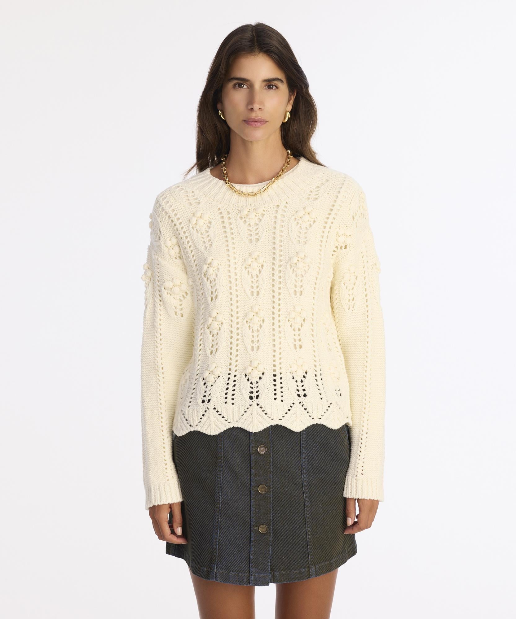 El işi dokusunu andıran detayları ve kabartmalı örgü desenleriyle dikkat çeken bu triko kazak, nostaljik ve romantik bir hava sunuyor. Yumuşak ipliğiyle sıcak tutarken aynı zamanda zarif bir siluet yaratıyor. Kış kombinlerinde özellikle yüksek bel jean pantolonlar ve kısa montlarla hem sıcak hem stil sahibi bir görünüm oluşturabilirsiniz. Soğuk havalarda konforu ve şıklığı bir arada yaşamak isteyenler için harika bir tercih olacaktır.