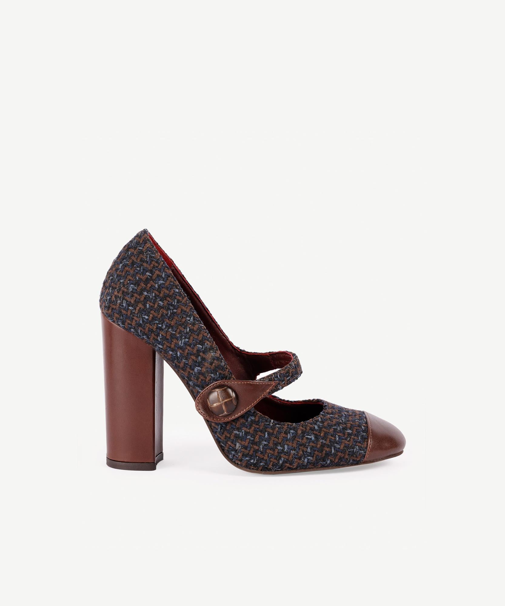 Tekstil gövde, deri topuk ve burun ile kompoze edilmiş topuklu ayakkabı gelenekseli çağrıştıran retro tarzıyla dikkat çekiyor. Üzerindeki bant ve düğme detayı ile bu özel tasarım sofistike tarzınızı yansıtmaya hazır.