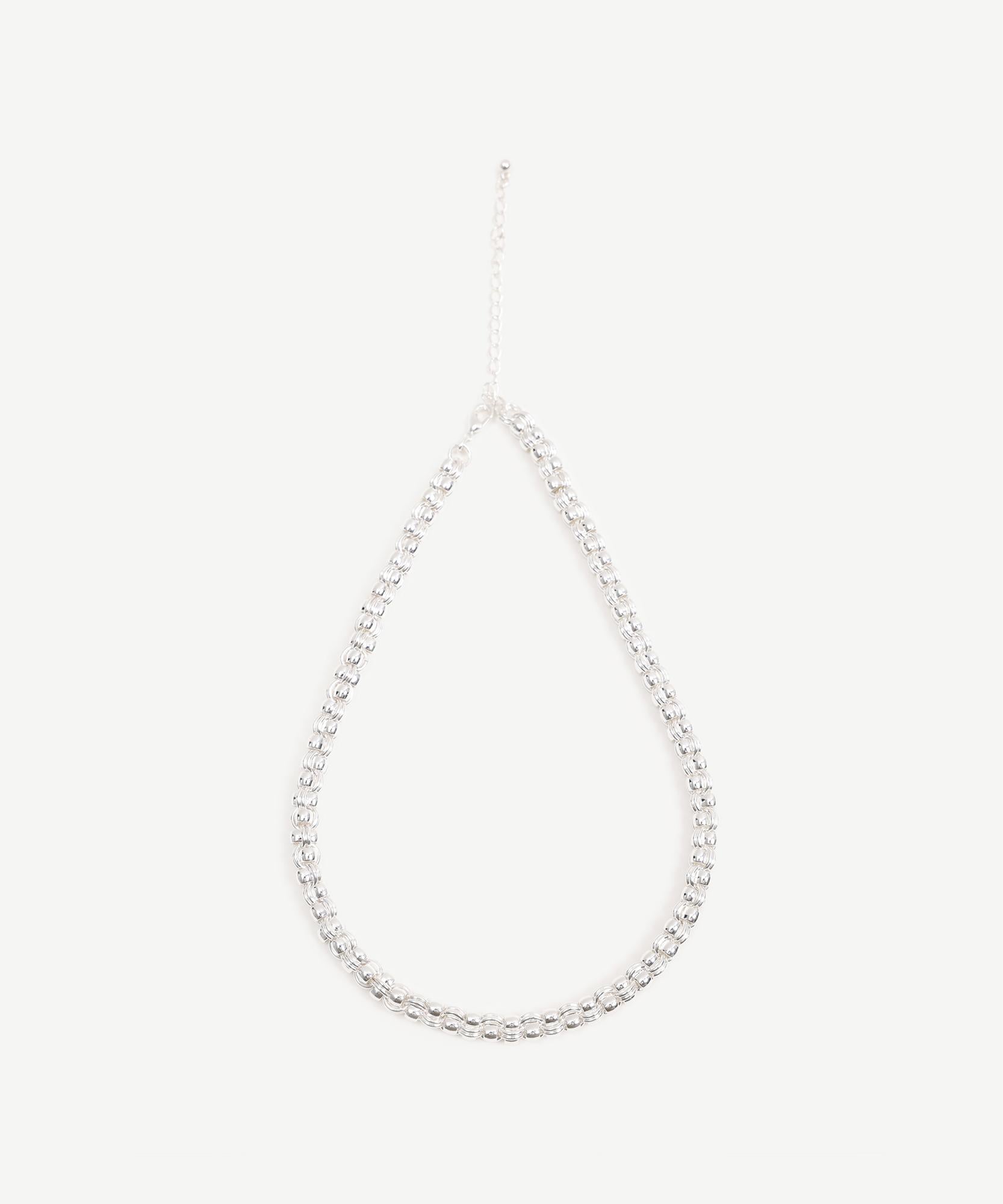 Bu zarif kolye, gümüş taşlarıyla sofistike bir şıklık sunuyor. Özellikle açık yaka gömlekler ve şık ceketlerle mükemmel bir uyum sağlar.