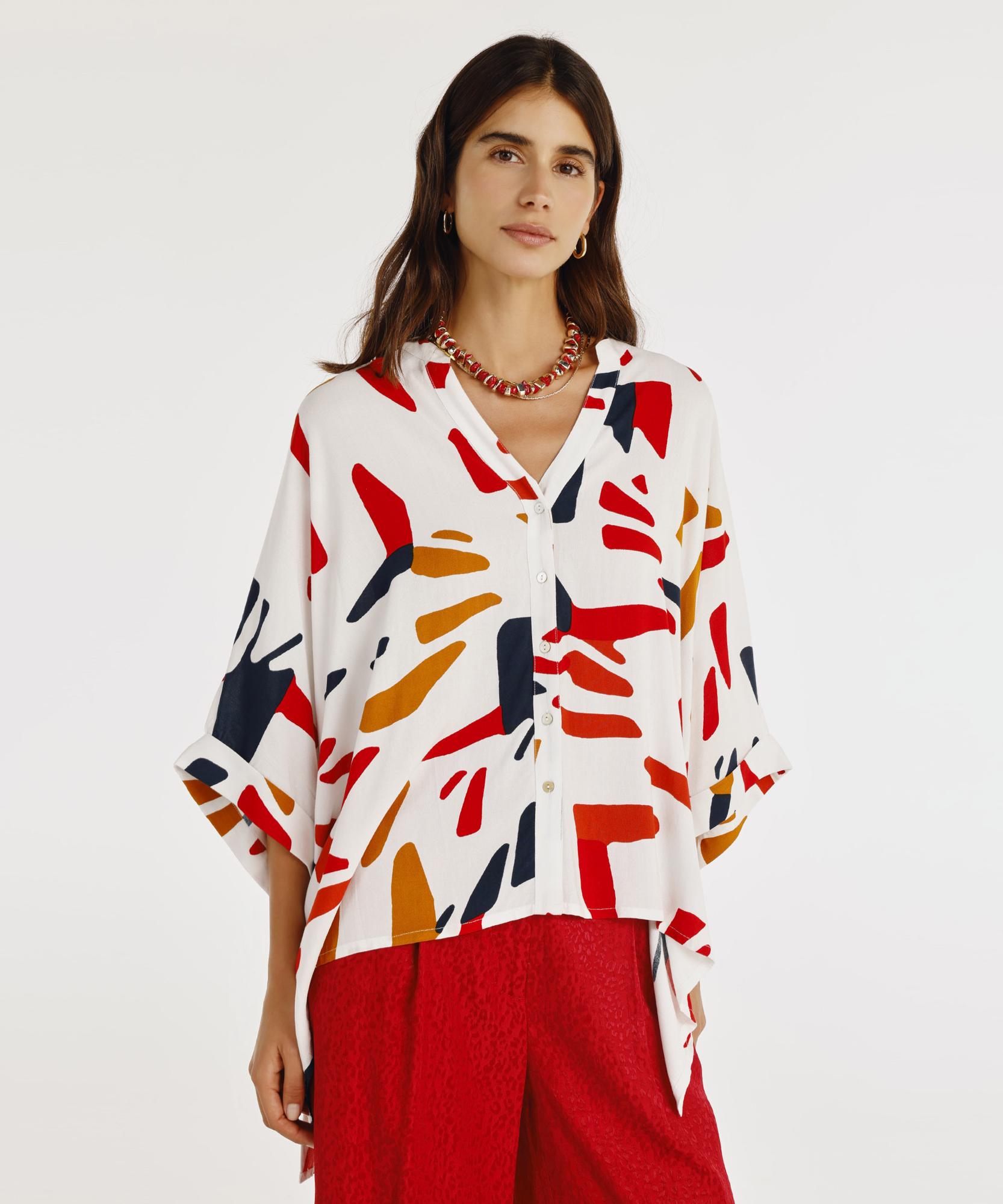 Geniş kesimi ve özgün baskılarıyla enerjik bir tarz sunan bu gömlek, oversize sevenler için ideal. Günlük kullanıma uygun olan bu model, tayt veya jean pantolonlarla kombinlenerek rahat ve şık bir stil oluşturabilir.