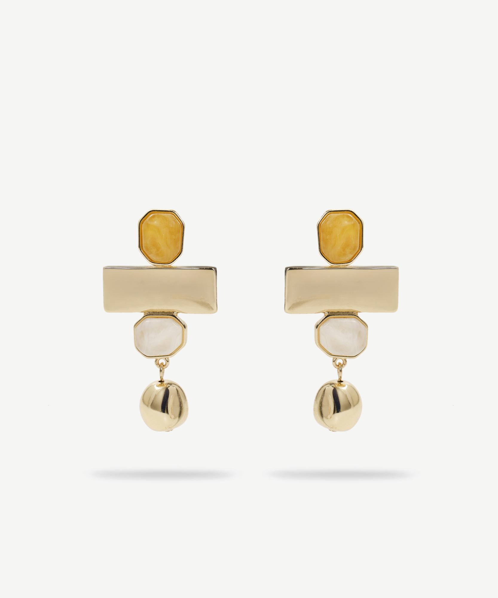 Modern geometrik formlarıyla dikkat çeken bu küpeler, asimetrik yapısıyla farklı ve iddialı bir stil sunuyor. Günlük kombinlerde sade kıyafetlerle, özel günlerde ise iddialı elbiselerle tamamlanarak güçlü bir tarz yaratılabilir.