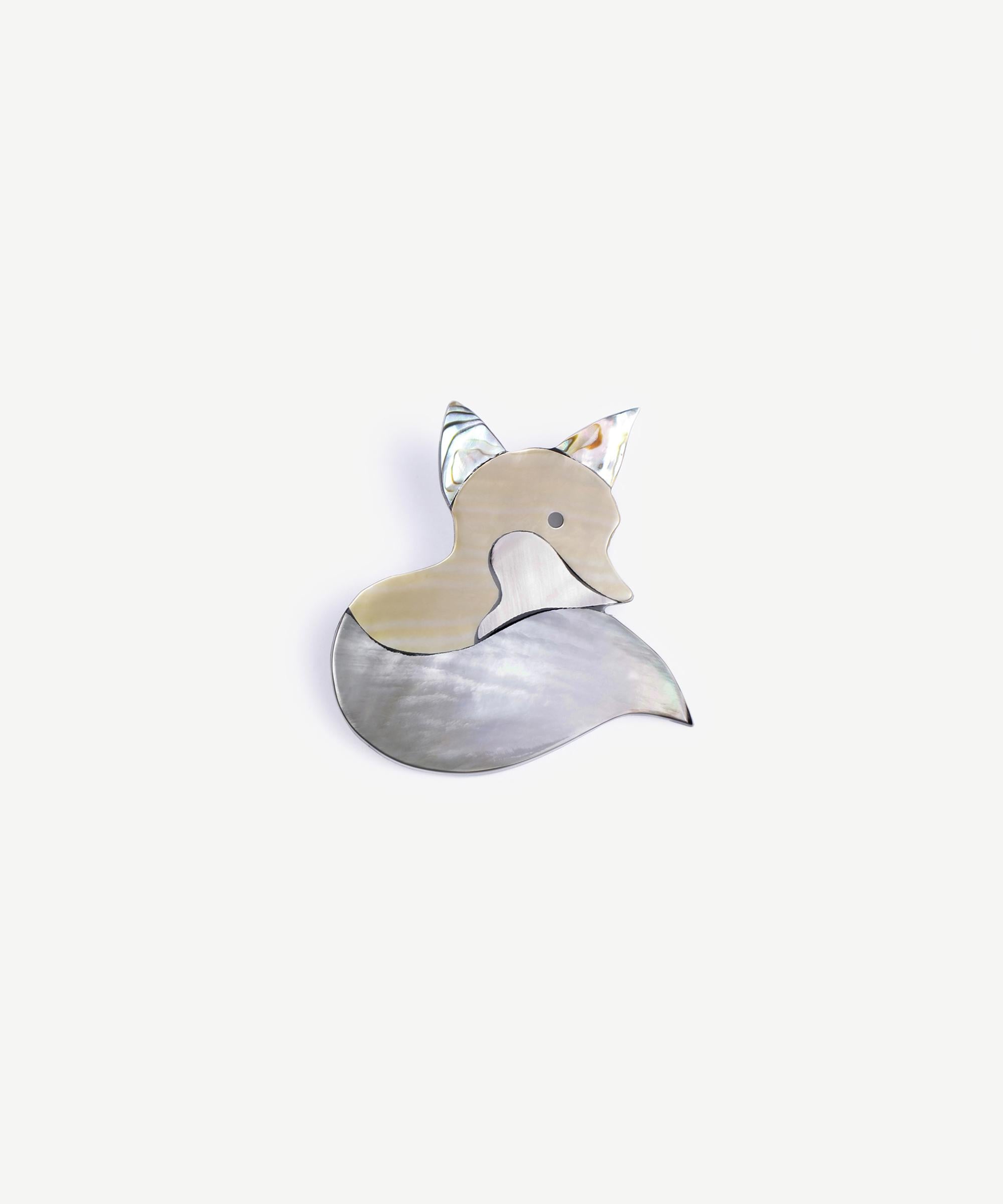 Tilki figürlü broş, sedef detaylarıyla doğadan ilham alarak zarif bir görünüm sunar. Günlük stilinize sofistike bir dokunuş katmak için tercih edilebilir.