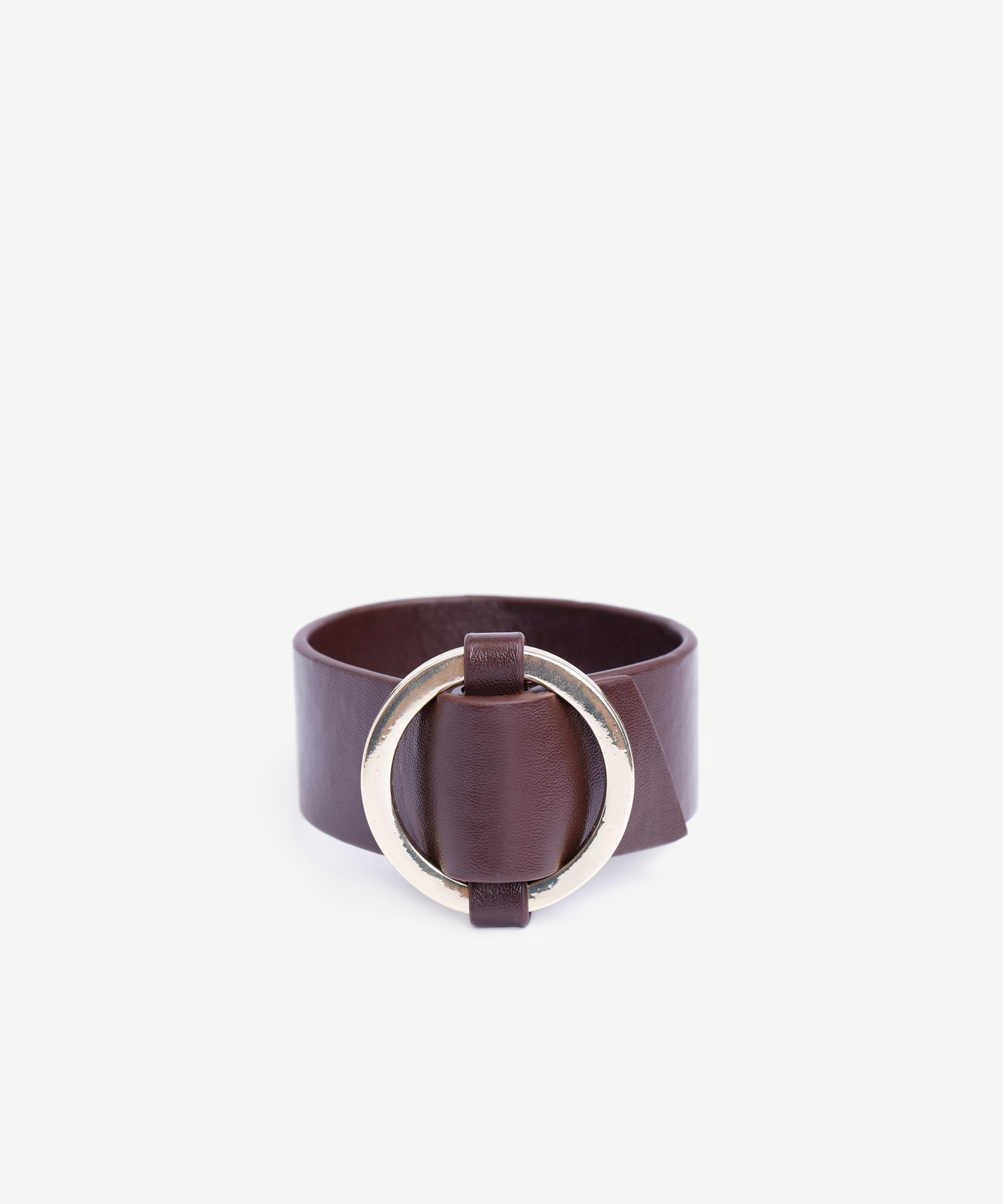 Geniş deri kayışı ve halka detayıyla tasarlanmış bu bileklik, güçlü ve iddialı bir görünüm sunar. Bohem ya da casual kombinlerde rahatlıkla kullanılabilir. Deri çantalarla ve büyük küpelerle tamamlandığında tarzınızı vurgular. Günlük stilinize dinamizm katar.