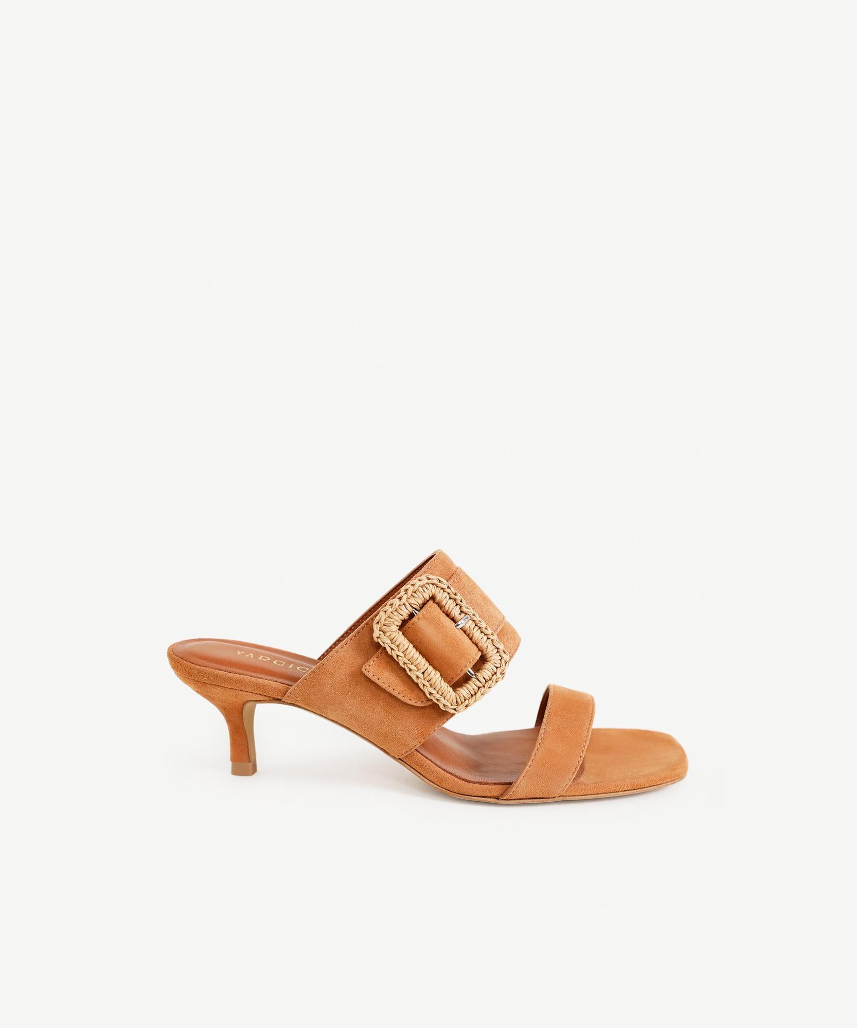 Göz alıcı tokasıyla öne çıkan bu şık topuklu terlik, zarafeti ve rahatlığı bir araya getiriyor. Hasır detaylı kemeriyle bohem bir hava kazanan model, keten pantolonlar, elbiseler ve eteklerle mükemmel uyum sağlar. Hem gündüz hem de gece şıklığı için ideal bir seçim.