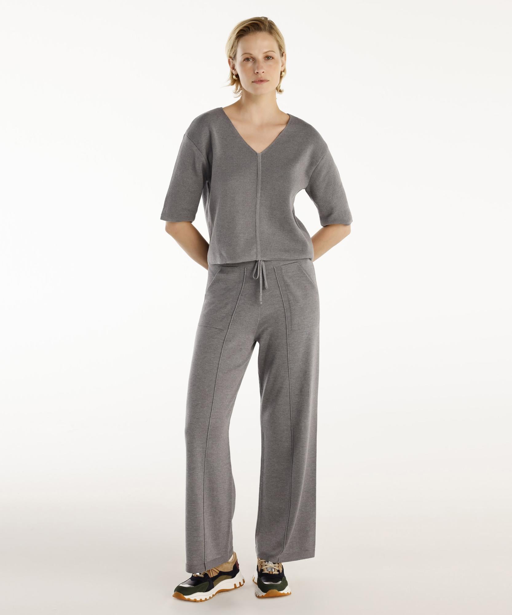 Yumuşak dokusuyla öne çıkan bu triko pantolon, rahat ve şık bir görünüm sunuyor. Elastik beli ve bağcık detayı, kişiselleştirilebilir bir kullanım sağlar. Soğuk günlerde oversize kazaklar ya da uzun kollu basic tişörtlerle kombinleyerek tarzınızı tamamlayabilirsiniz.