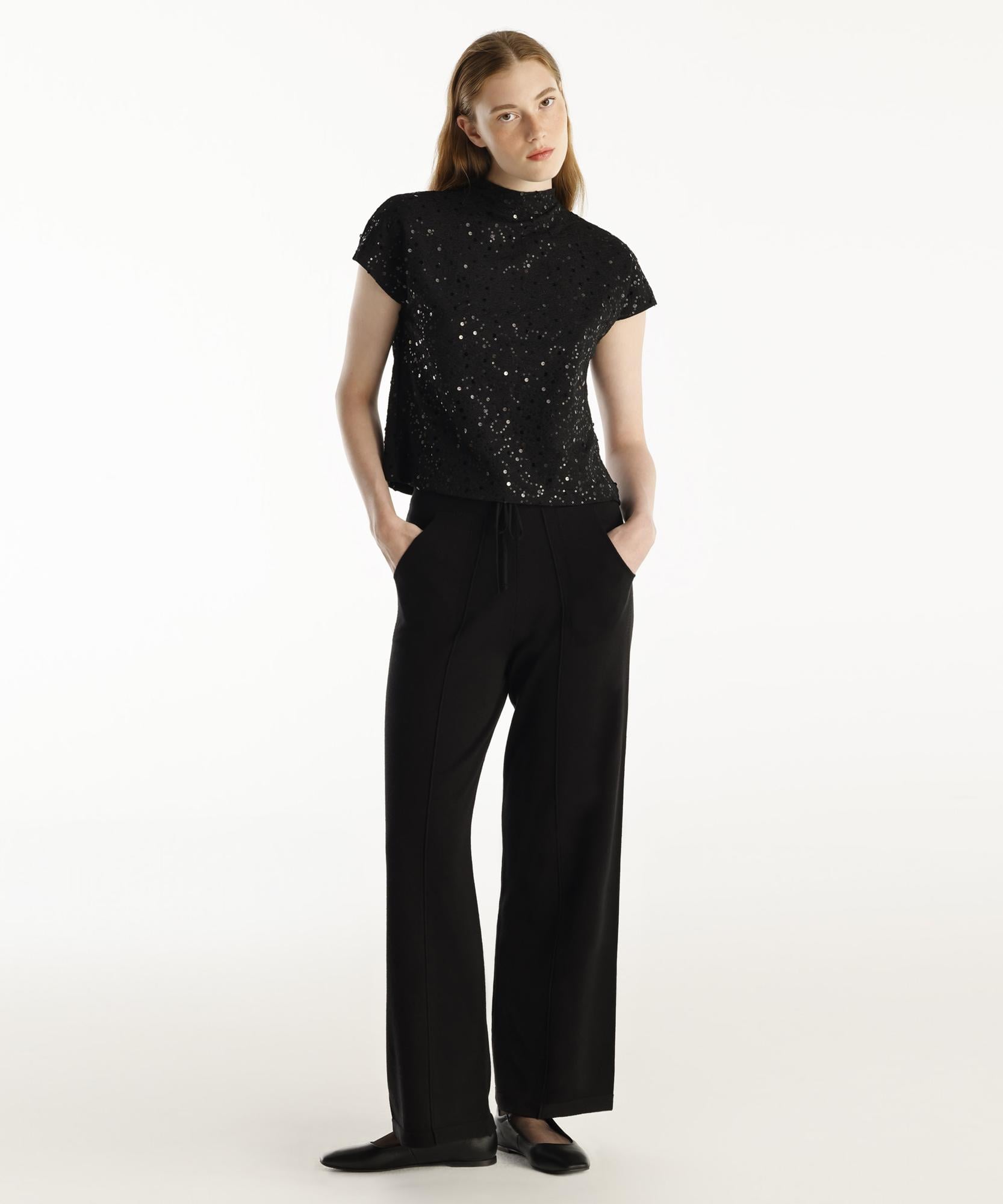 Yumuşak dokusuyla öne çıkan bu triko pantolon, rahat ve şık bir görünüm sunuyor. Elastik beli ve bağcık detayı, kişiselleştirilebilir bir kullanım sağlar. Soğuk günlerde oversize kazaklar ya da uzun kollu basic tişörtlerle kombinleyerek tarzınızı tamamlayabilirsiniz.