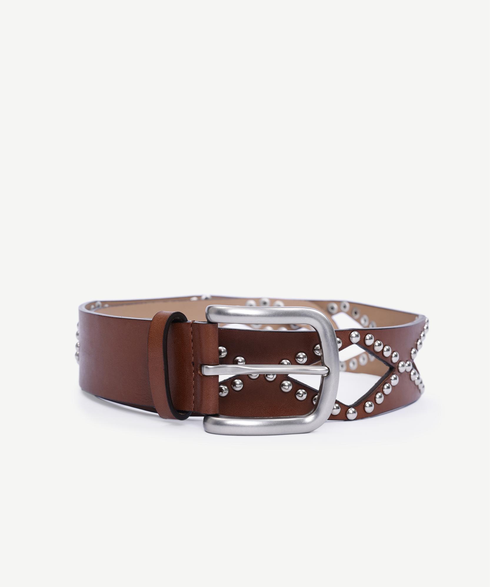 Metal zımba detaylarıyla hareket kazanan bu kemer, stilinize güçlü ve özgün bir hava katar. Geniş yapısı sayesinde hem elbiselerle hem de yüksek bel pantolonlarla rahatlıkla kullanılabilir. Mat tokası ve geometrik kesimleri modern bir görünüm sunar. Kış mevsiminde deri ceket veya kalın hırkalarla kombinleyerek cesur bir tarz oluşturabilirsiniz.