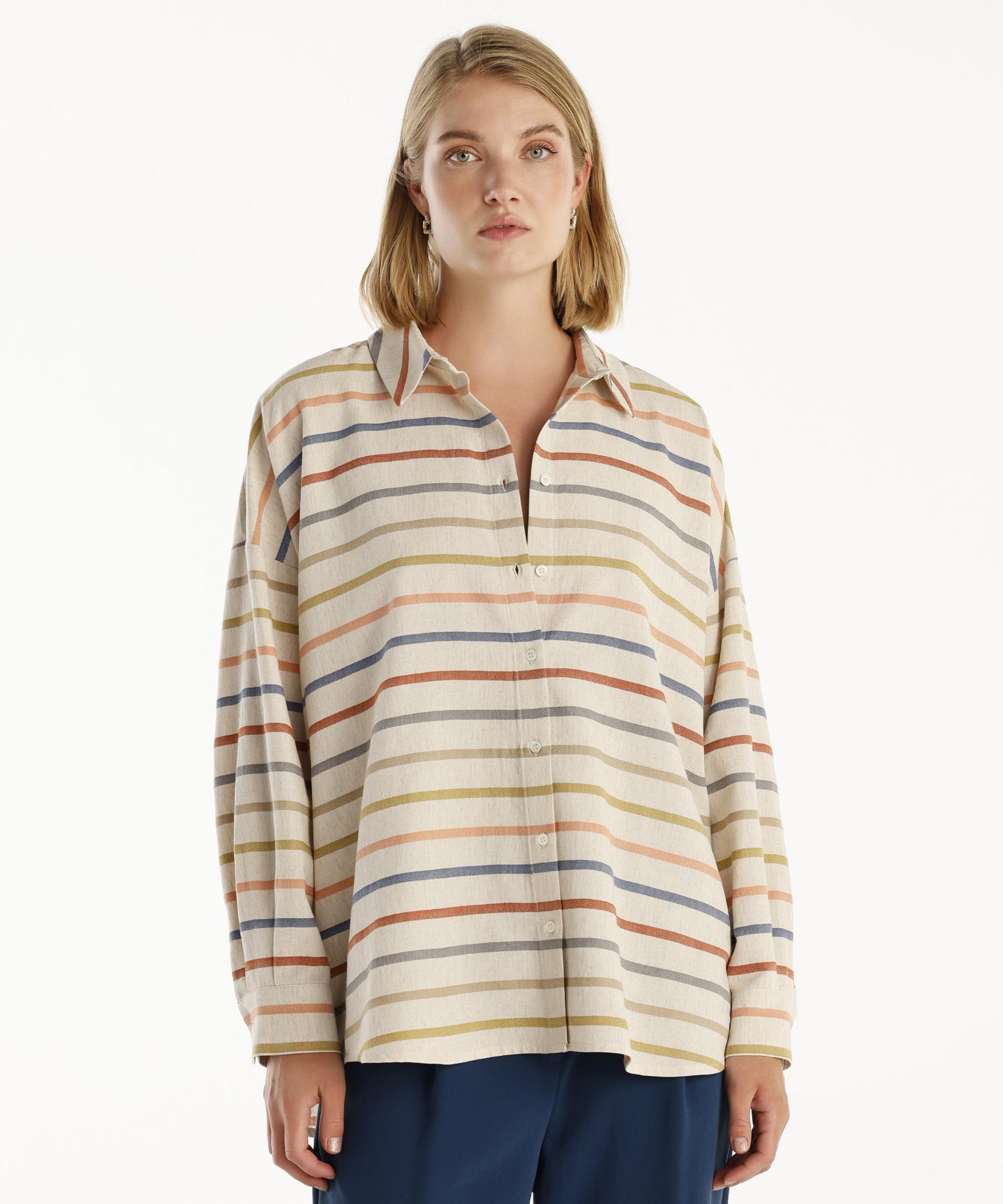 Çok renkli yatay çizgili bu bluz, enerjik ve dinamik bir görünüme sahip. Geniş kesimi ve rahat yapısı ile günlük kullanım için oldukça uygun olan bu model, stilinize hareket katacak.