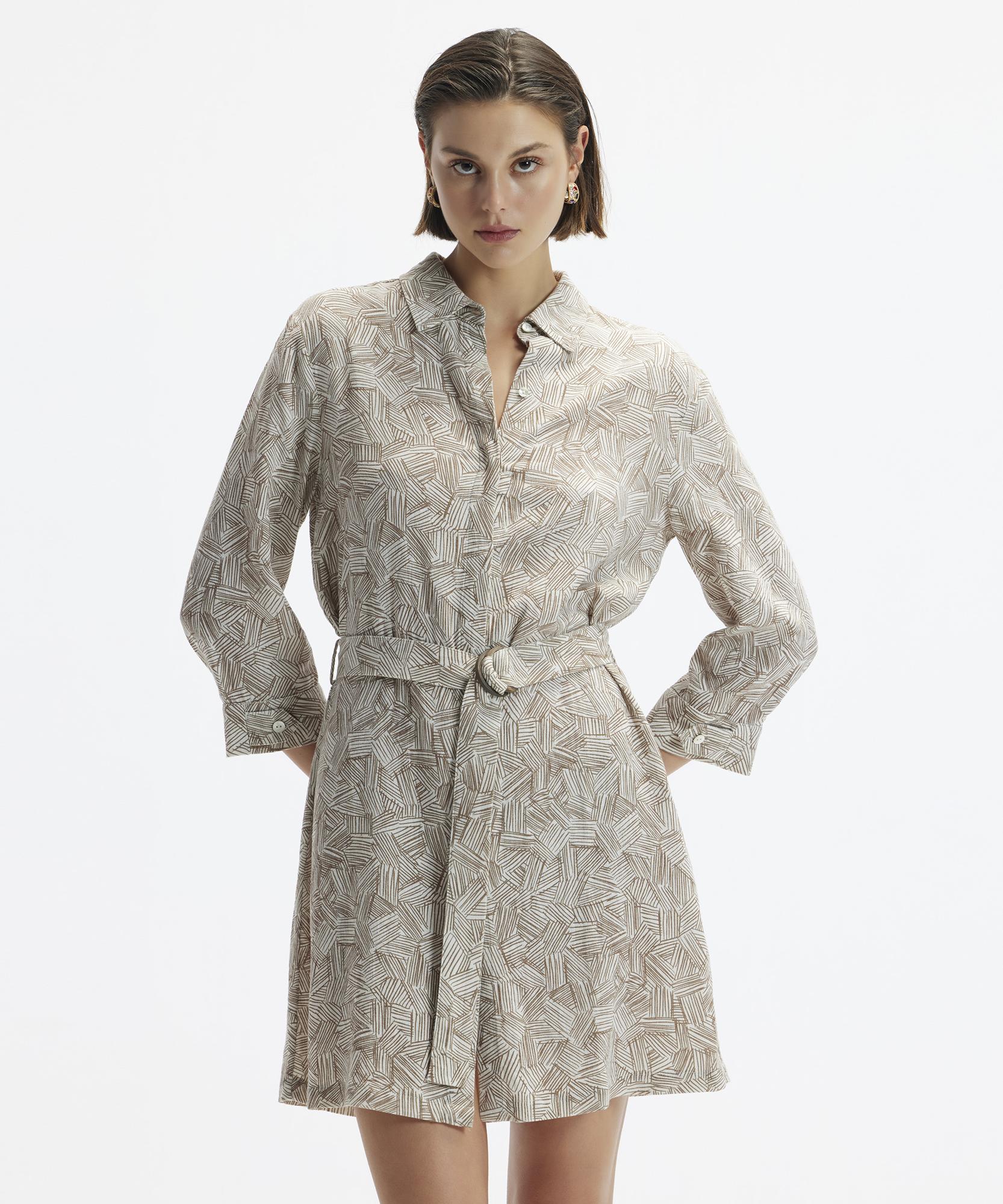 Zarif ve sofistike bir görünüm arayanlar için ideal olan bu elbise, beli vurgulayan kuşak detayı ile sofistike bir silüet sunar. Klasik yaka tasarımı ve düğme detayları ile her durum için uygun ve zamansız bir parça olan bu elbiseyi, iş toplantılarından özel akşamlara kadar geniş bir yelpazede kullanabilirsiniz.