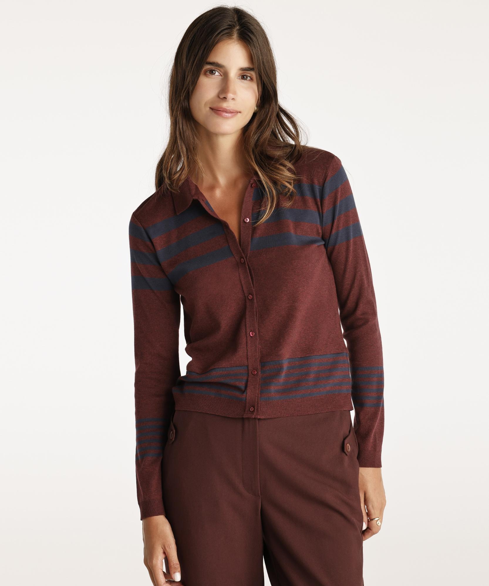 Bu zarif hırka, ince şerit detaylarıyla dikkat çekiyor. Gömlek ya da basic bir bluzla kombinleyerek hem ofis hem de günlük şıklık elde edebilirsiniz. Yüksek bel pantolonlarla tamamlandığında, klasik ve modern bir tarz yaratır.