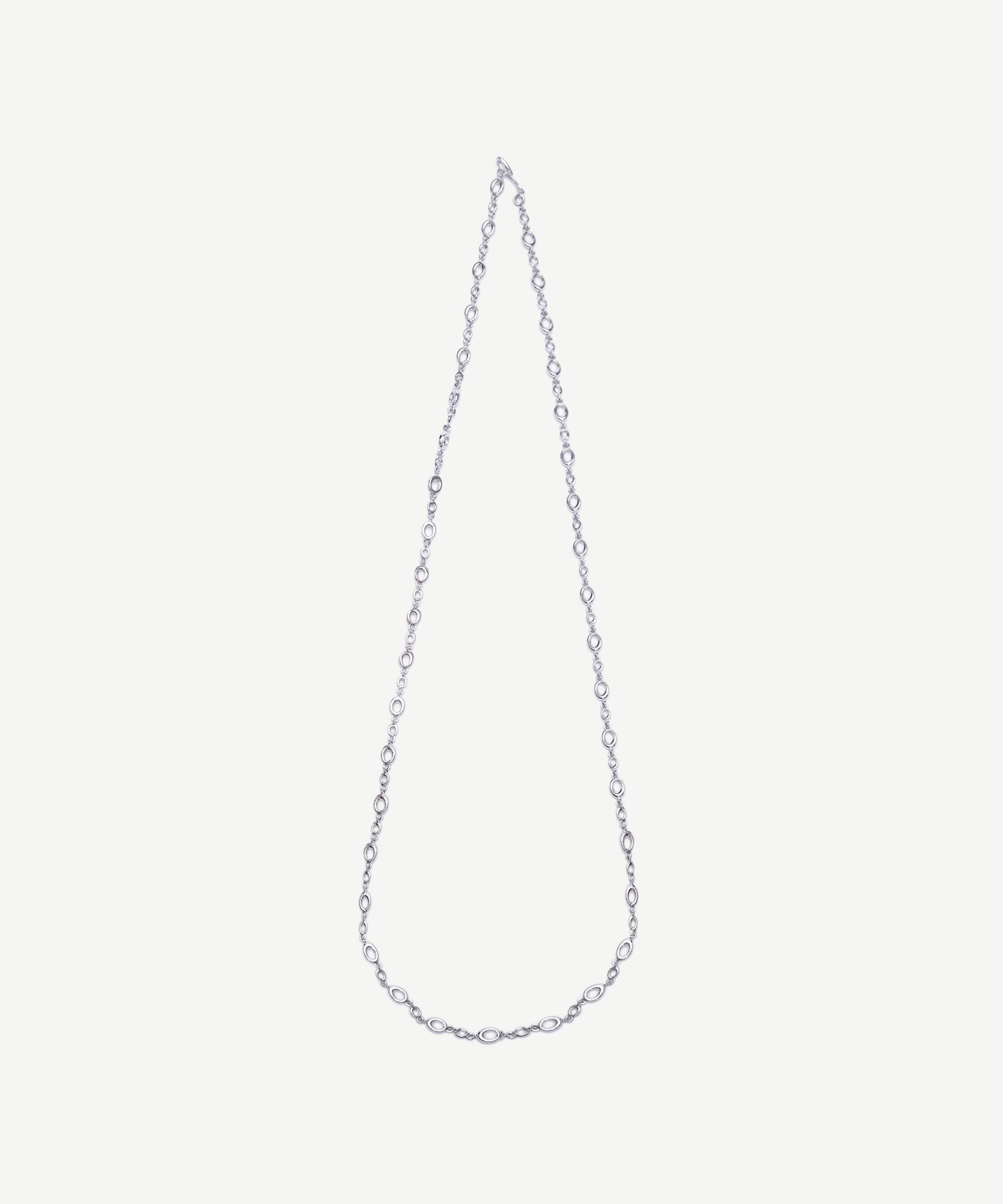 Zarif halkalardan oluşan bu kolye, modern tasarımıyla minimal şıklığın temsilcisi. İnce zincir yapısı sayesinde hem tek başına hem de katmanlı kombinlerde rahatlıkla kullanılabilir. Özellikle sade trikolar ve blazer ceketlerle birlikte kullanıldığında etkileyici bir denge yaratır.