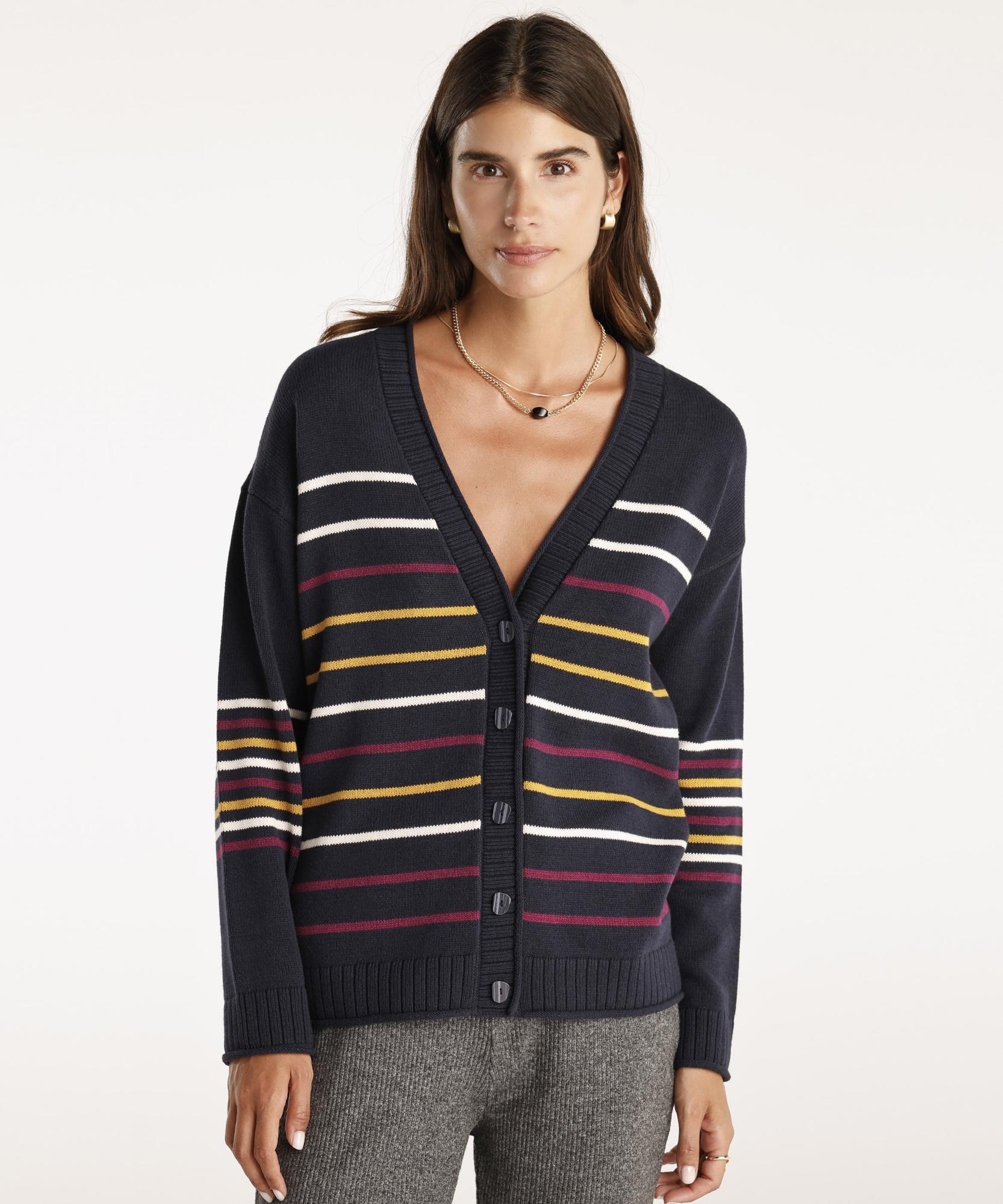 Bu şık ve rahat hırka, düğme detaylarıyla günlük kombinler için ideal bir parça. Geniş kesimi ve çizgili deseni, hem sade hem de şık bir görünüm sunar. Jean pantolon veya kumaş pantolonlarla kombinleyerek, hem iş ortamında hem de günlük hayatta kullanabileceğiniz bir stil yaratabilirsiniz.