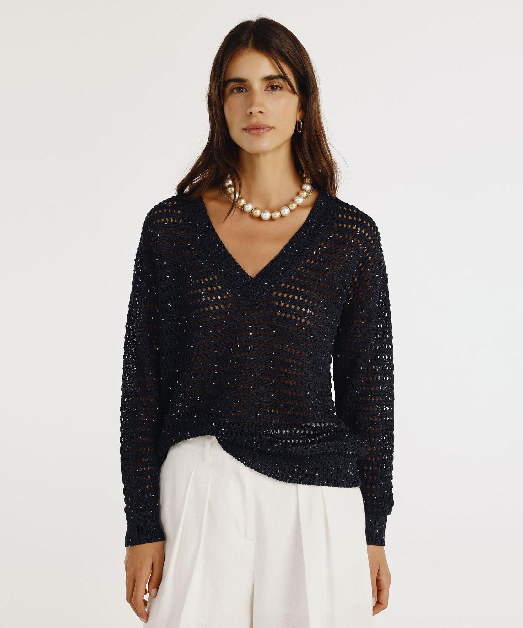 Modern ve rahat tasarımıyla öne çıkan bu kazak, geniş kalıbı ve nefes alabilen dokusuyla konforlu bir kullanım sunuyor. V yaka detayı feminen bir dokunuş katarken, örgü desenleri hareketli ve şık bir görünüm sağlıyor. Hafif ve esnek yapısı sayesinde katmanlı kombinler için ideal olan bu kazak, günlük stilinize sofistike bir dokunuş eklemek için mükemmel bir seçim.
