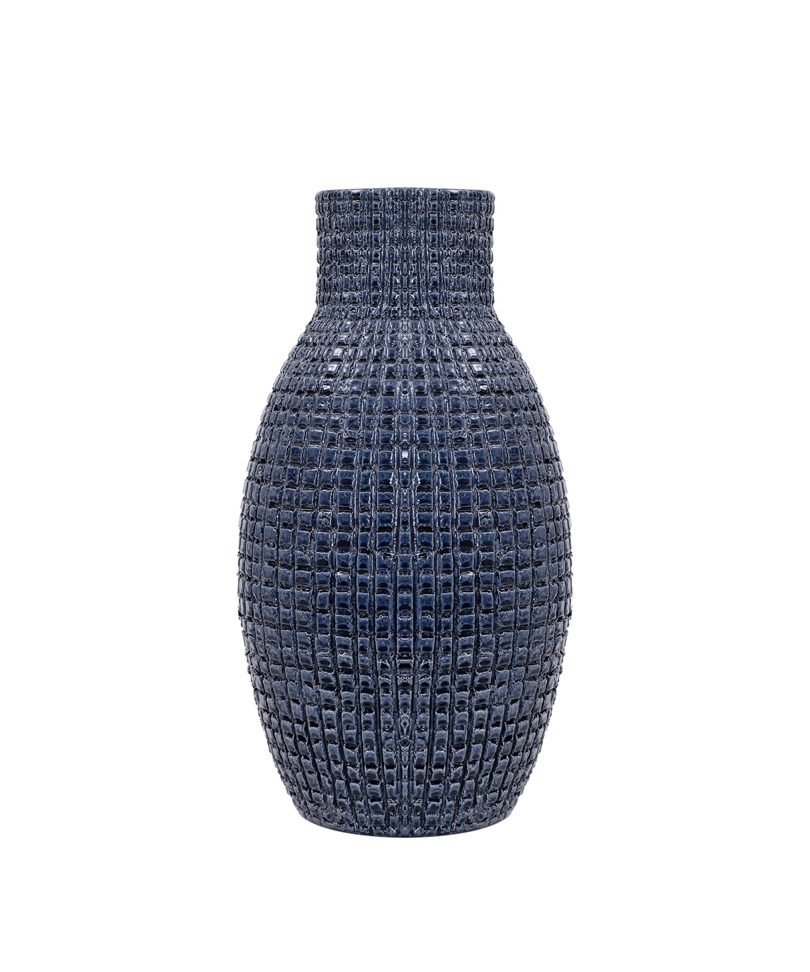 Göz alıcı lacivert rengi ve kabartmalı yüzeyiyle modern bir dokunuş sunan bu dekoratif vazo, her mekana şıklık katar. Özel tasarımı sayesinde hem tek başına hem de çiçeklerle harika bir görünüm sergiler.