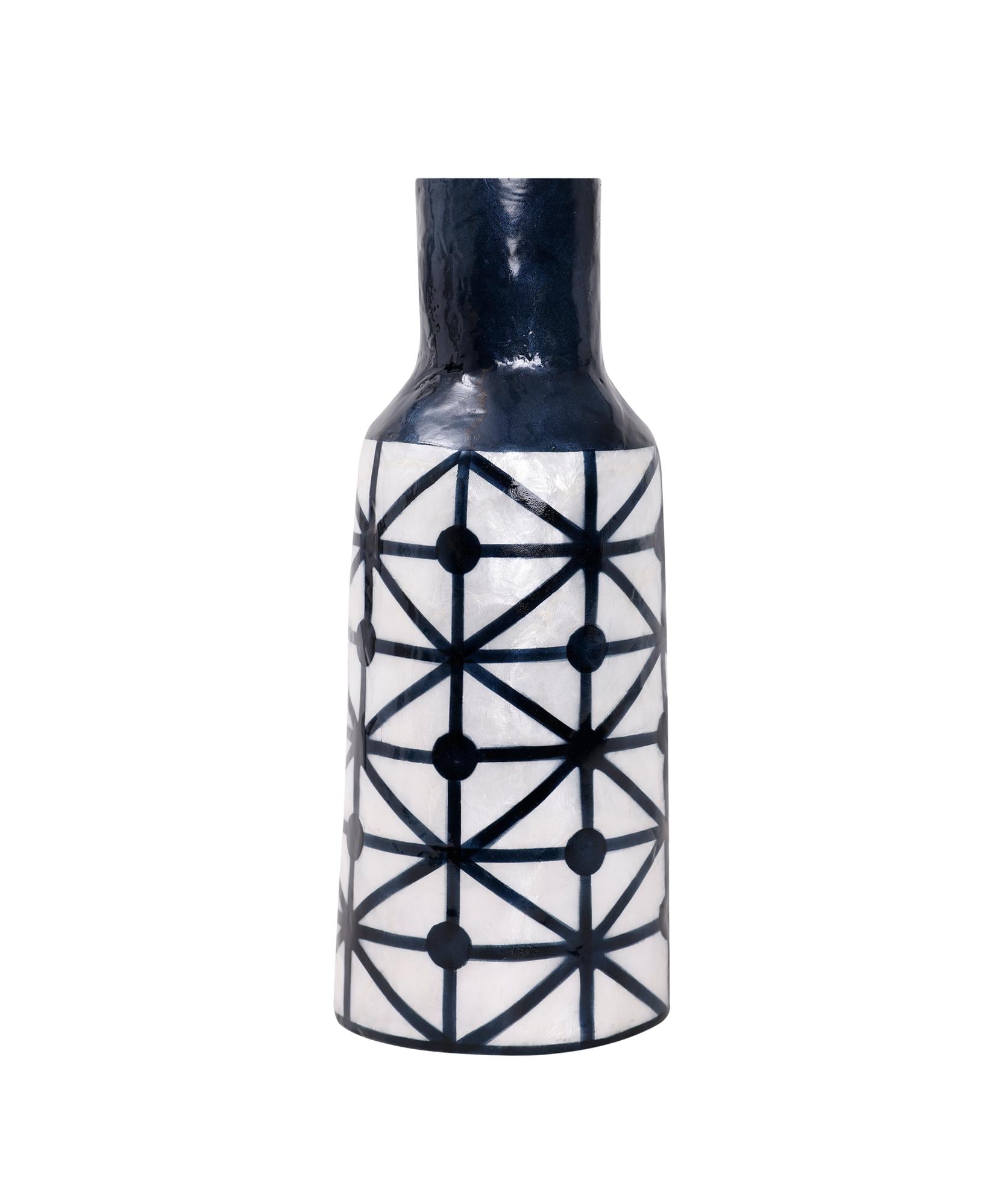 Geometrik desenleriyle modern bir tarz sunan bu vazo, dekorasyonunuza dinamik bir hava katar. Siyah ve beyazın kontrastı sayesinde dikkat çeken bir aksesuar olarak kullanılabilir.