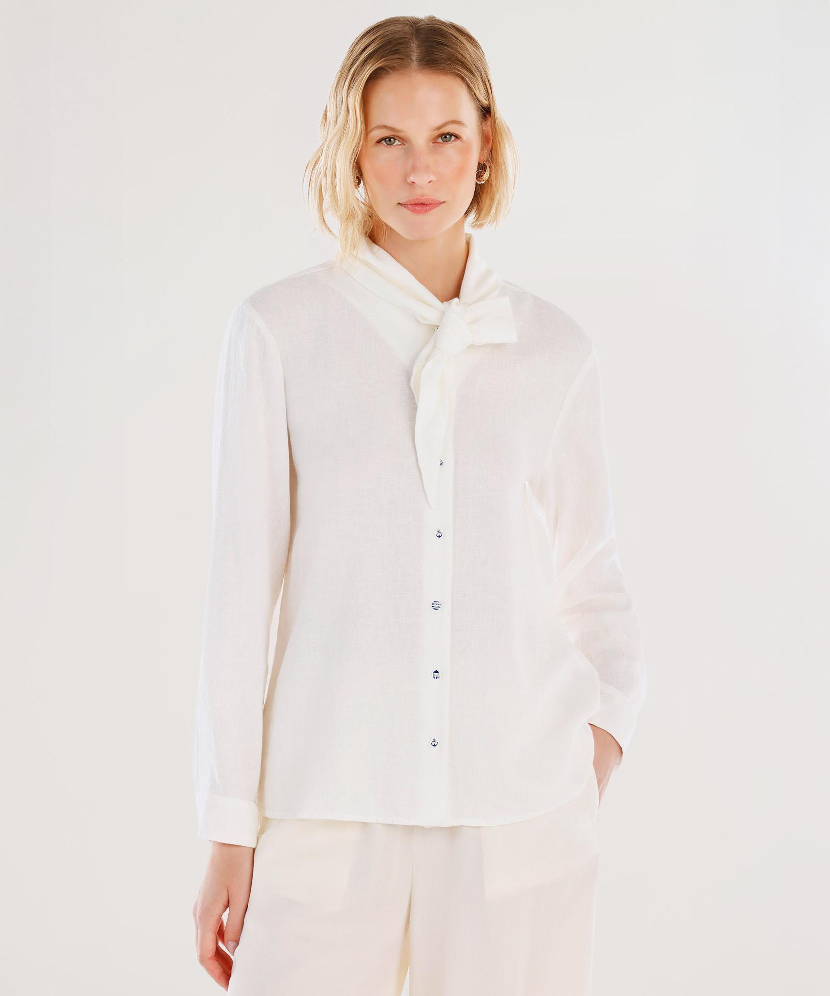 Yaka kısmındaki fular detayıyla sofistike bir stil sunan bu gömlek, klasik kombinler için ideal bir seçenek. Şık bir duruş isteyenler için kumaş pantolon ve klasik ayakkabılarla tamamlanabilir. Günlük kullanımda jean ve rahat ayakkabılarla modern bir hava kazandırılabilir.