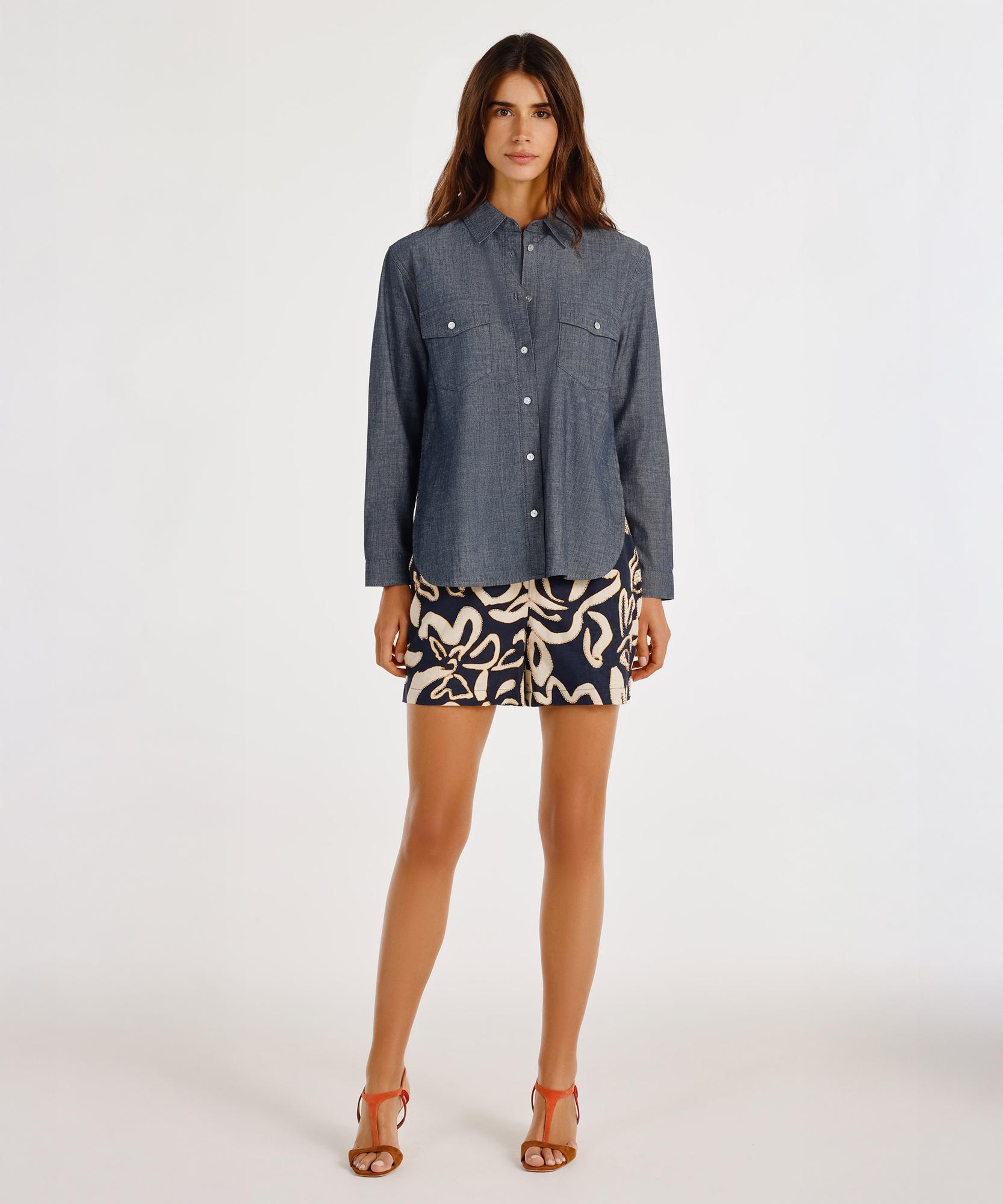 Klasik western tarzı denim gömlek, cep detayları ve düğmeli yapısıyla şıklık ve rahatlığı bir araya getiriyor. Günlük stilinize spor bir hava katmak için basic tişörtlerle kombinleyebilir veya düğmelerini açık bırakarak crop top ile tamamlayabilirsiniz. Kot pantolon veya eteklerle uyumlu bir kombin yapabilirsiniz.