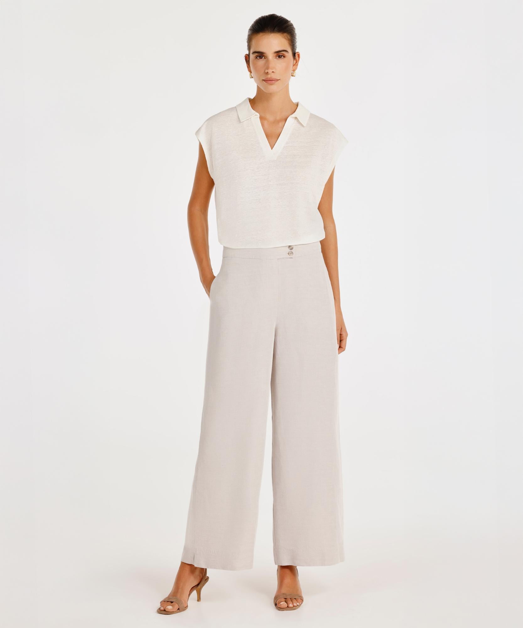 Zarif ve rahat tasarımıyla günlük stilinize şıklık katan bu pantolon, geniş kesimi ve akışkan kumaşı sayesinde konforlu bir kullanım sunar. Basic tişörtlerden şık bluzlara kadar pek çok farklı üstle kombinlenebilir ve her ortama uyum sağlayabilir.