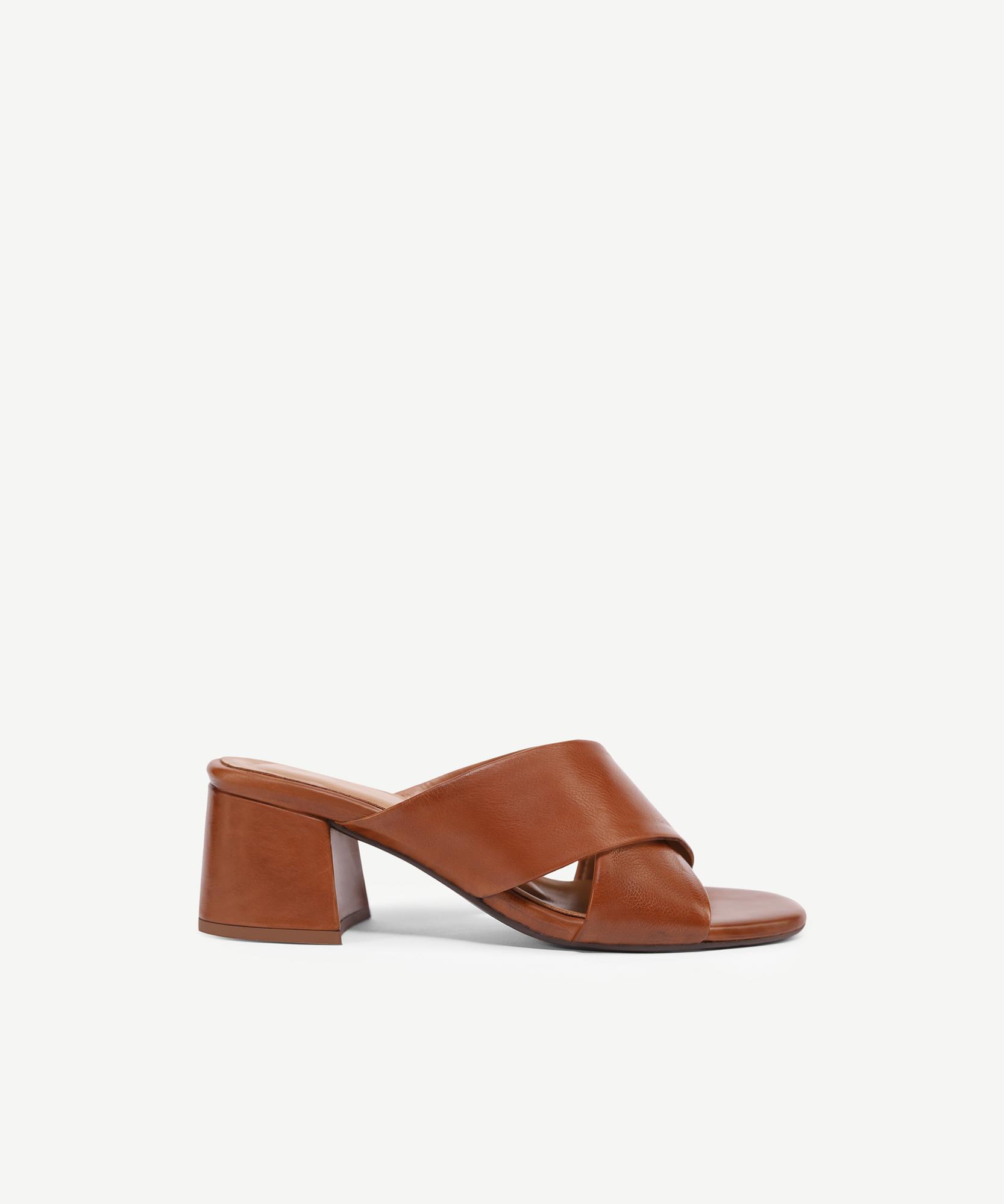 YARGICI Yumuşak Tabanlı Çapraz Deri Topuklu Terlik