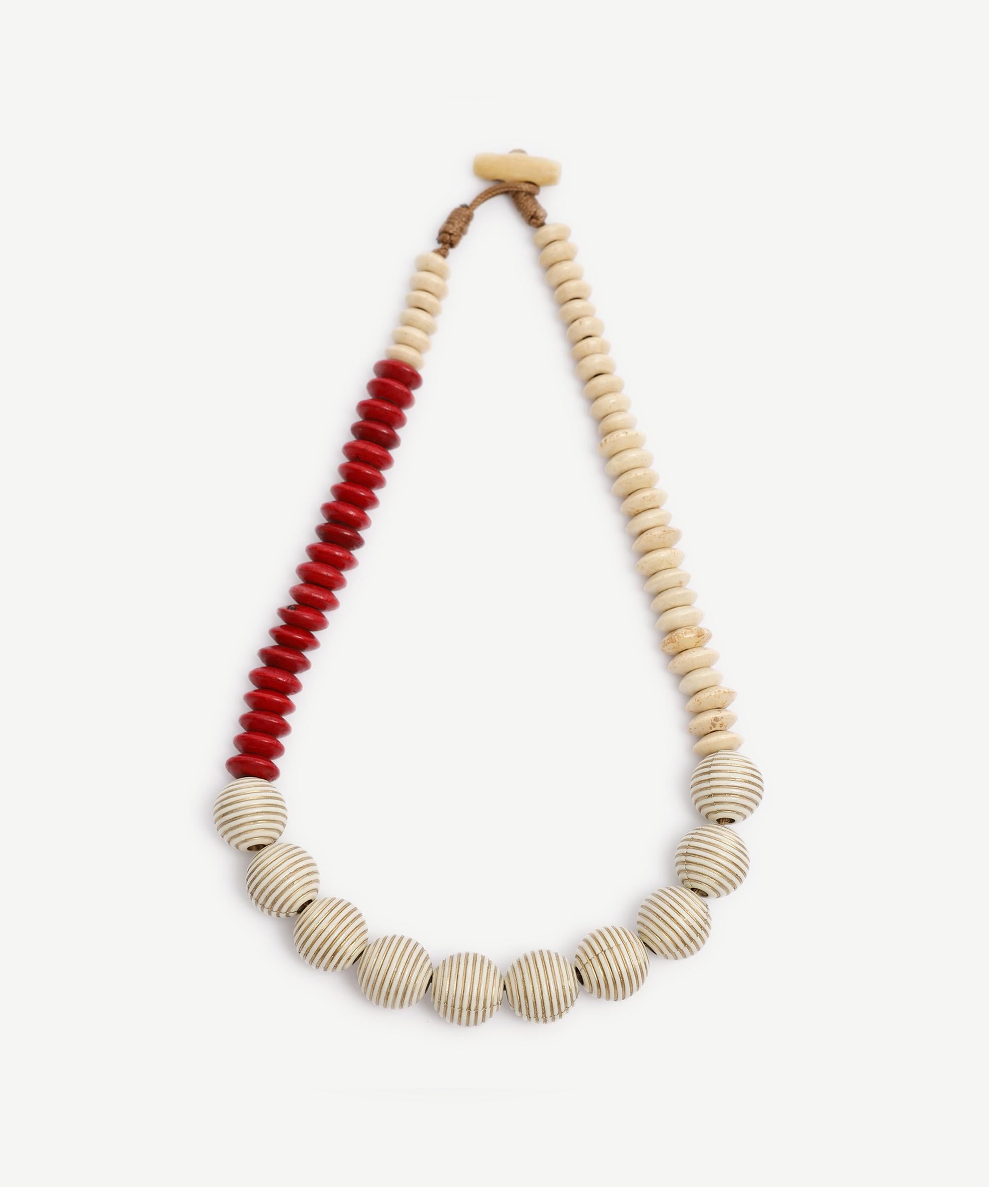 Etnik esintili formu ve kontrast detaylarıyla dikkat çeken bu kolye, karakterli bir stil yaratmak isteyenler için ideal. Özellikle balıkçı yaka trikolarla veya düz oversize gömleklerle kombinlendiğinde sezonun öne çıkan tamamlayıcısı olur.