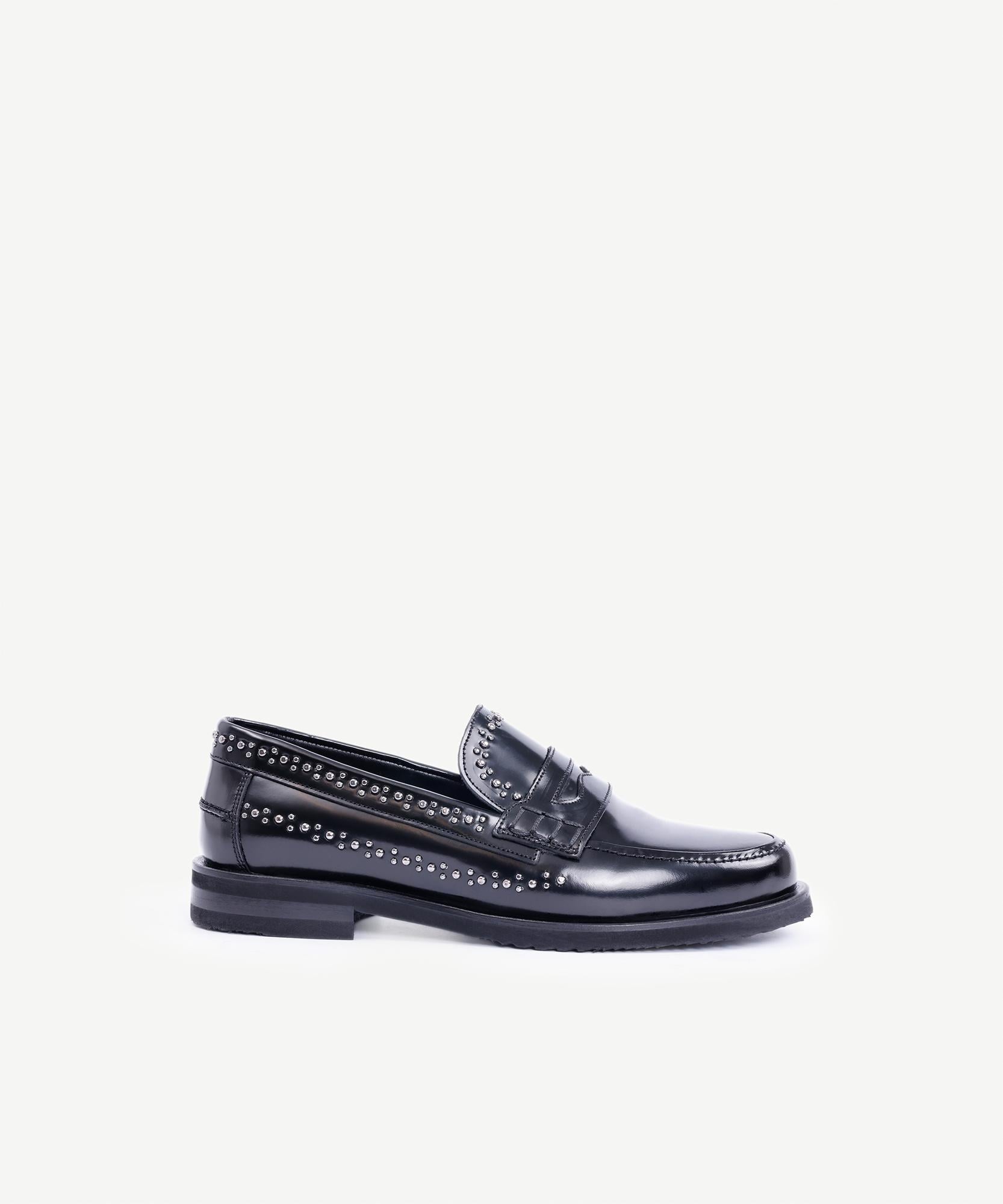 Parlak deri yapısı ve metal zımba detaylarıyla öne çıkan bu loafer, klasik tasarımı modern bir yorumla sunar. Dikkat çekici detayları sayesinde sade kombinlerinize iddialı bir hava kazandırır. Kumaş pantolonlar veya düz kesim elbiselerle şık bir kontrast yakalanabilir. Günlük şıklıkta stil sahibi bir dokunuş arayanlara hitap eder.