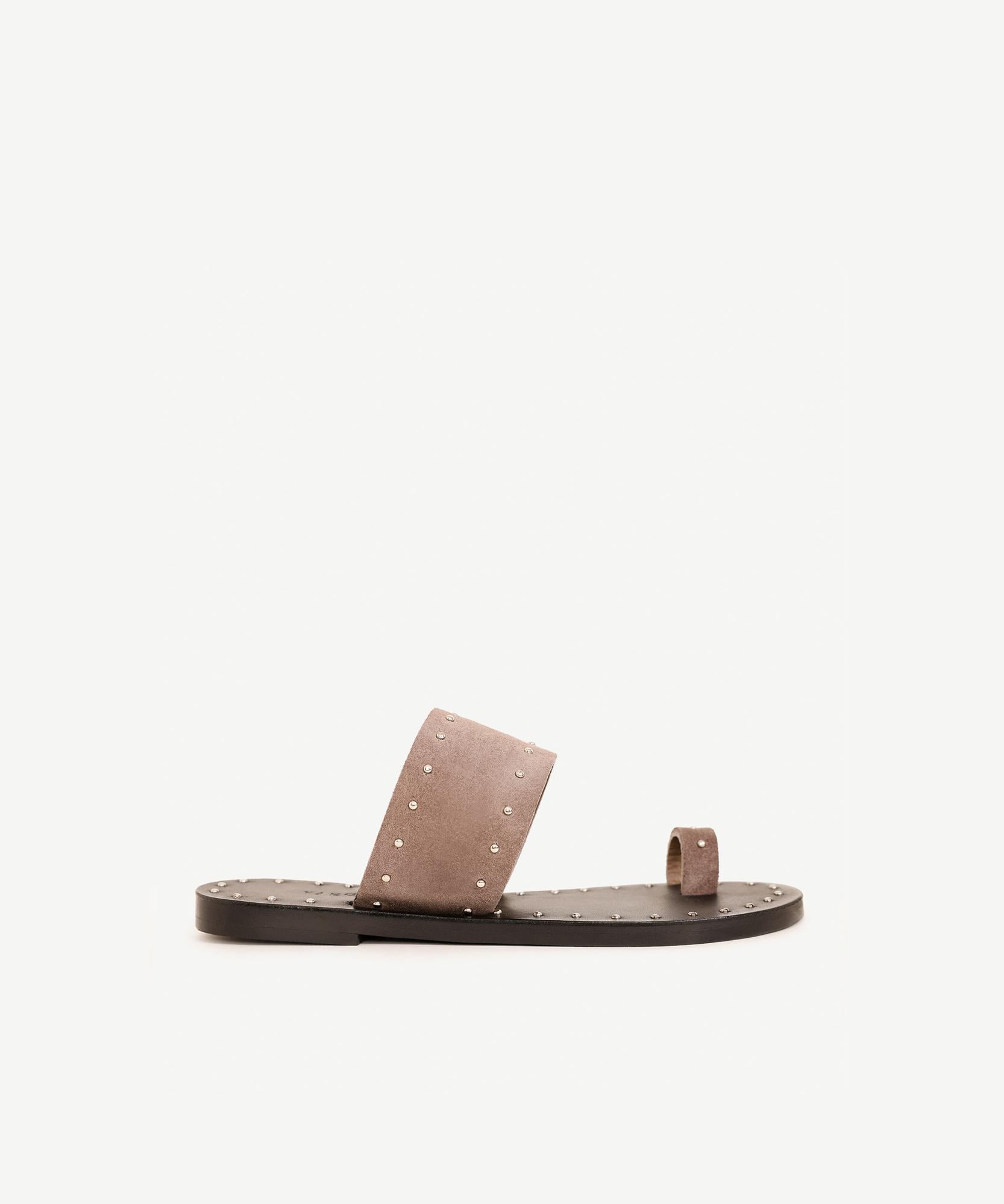Metalik zımbalarla süslenmiş bu parmak arası terlik, sade ve modern tasarımıyla dikkat çekiyor. Günlük stilinize şık bir dokunuş katmak için ideal olan model, jean pantolonlardan maxi elbiselere kadar birçok farklı kombinle tamamlanabilir. Hem rahat hem de stil sahibi bir görünüm arayanlar için mükemmel bir seçim.