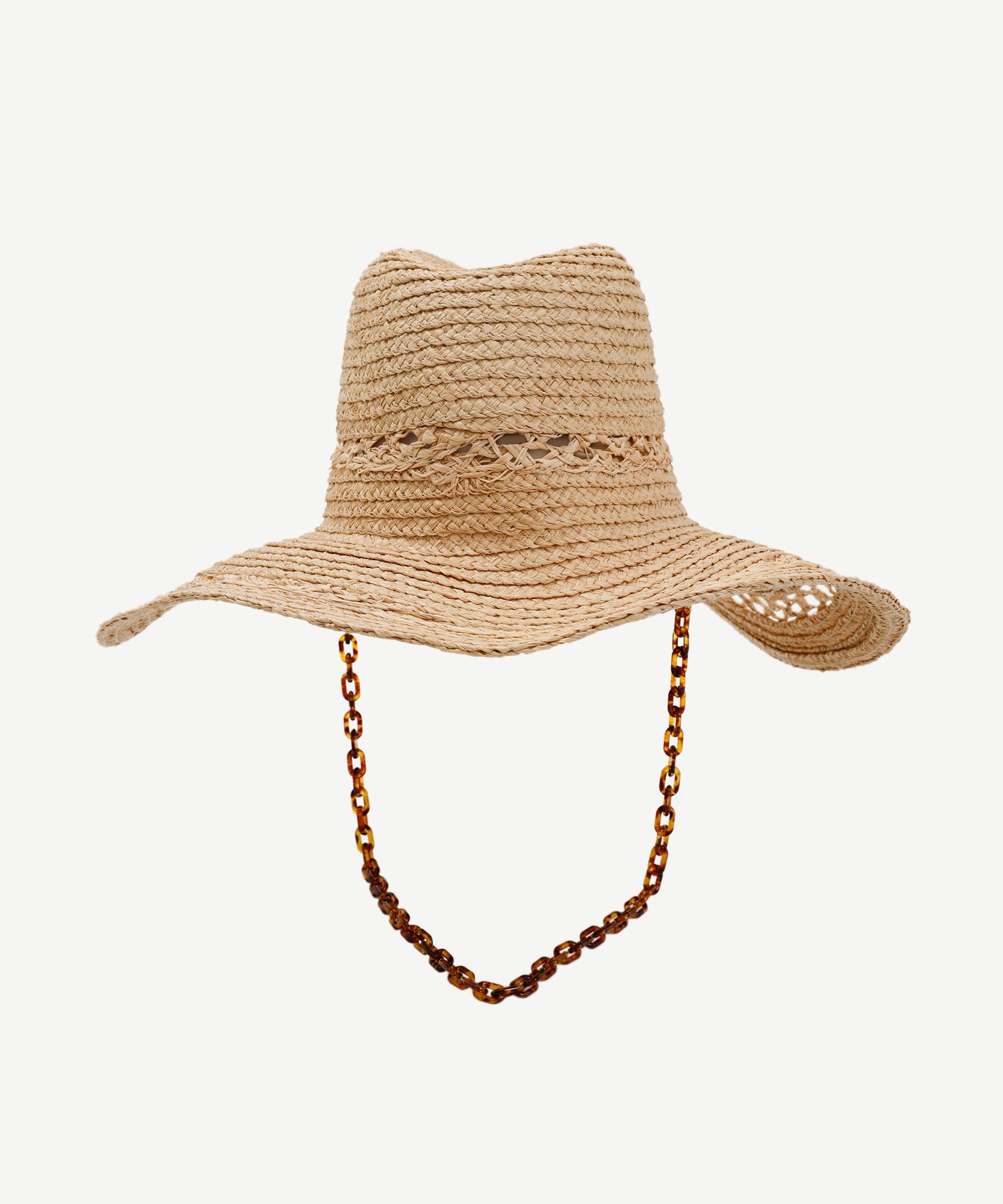 Doğal örgü detaylarıyla dikkat çeken bu kovboy tarzı şapka, bohem ve casual kombinler için ideal bir seçenektir. Zincir detayları modern bir hava katarken, geniş kenarları güneşten koruma sağlar. Maxi elbiseler, denim şortlar veya salaş gömleklerle rahat bir yaz stili oluşturabilirsiniz.