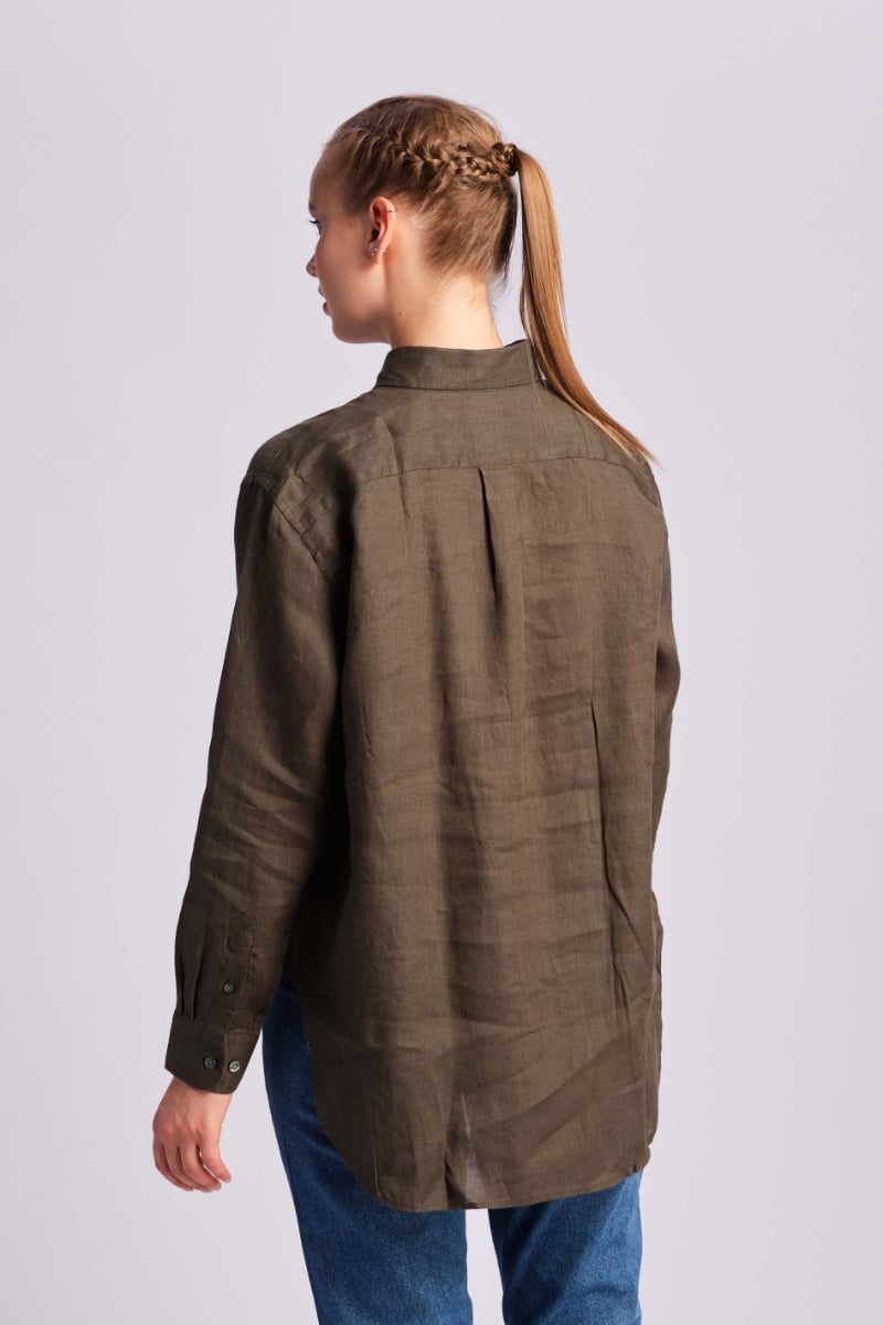 Gömlek yaka, nakış detaylı keten gömlek.%100 LinenBu ürünü 30 derecede, benzer renklerle, tersten yıkayınız ve gölgede kurutunuz. Baskı veya nakış olan bölgeye ütü temas ettirmeyiniz, bu bölge tersten ütülenebilir.