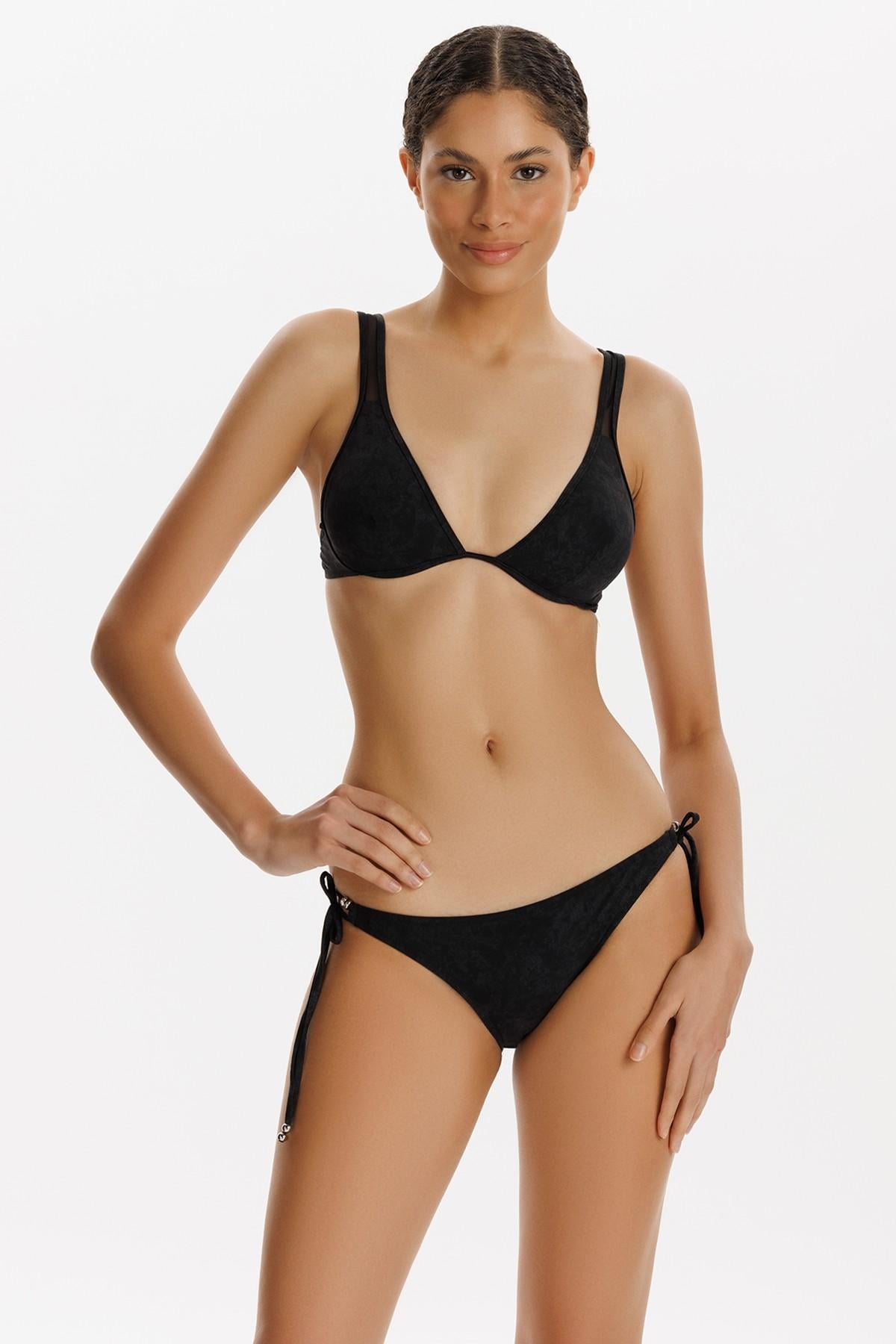 VINCENZA - TELLİ BİKİNİ Ürün Özellikleri: • Tasarım: Sade ve zarif yumuşak dokulu süet bikini takımı hem rahatlığı hem de stil sahibi görünümü bir araya getiriyor. Süet ve yumuşak dokusu vücut formunu sıkılaştıran balenli formu sayesinde göğüslere ekstra destek sağlayarak dik ve estetik bir görünüm sağlar. Askıları sabit ve tül detaylıdır. Bikini altı çift bağcıklı ve ince kenarlıdır. Elastik yapısıyla vücuda tam oturur, giyim konforu sağlar. • Askı Detayı: Kalın tül askılı ve sırt kopça detaylı bikini üstü, zarif ve modern bir tasarım ile harmanlanmıştır. • Göğüs: Balenli ve dolgusuz yapısı doğal bir görünüm ve ekstra destek sağlar. Takıp çıkarılabilen kaplarla kişiye özel kullanım sunar. • Bikini Alt: Ayarlanabilir çift bağlı özelliği, kişisel rahatlık ve uyum için esneklik sağlar. • Kumaş: 73% PA - 27% EA yapısı ile uzun ömürlü kullanım ve hareket özgürlüğü sağlar. • Astar: Alt ve üst parça tamamen astarlıdır, ekstra rahatlık ve şeffaflık önleyerek güvenli bir kullanım sunar. • Aksesuar: Alt kısmında yer alan boncuk detayları, tasarıma zarif bir hareketlilik katmaktadır.